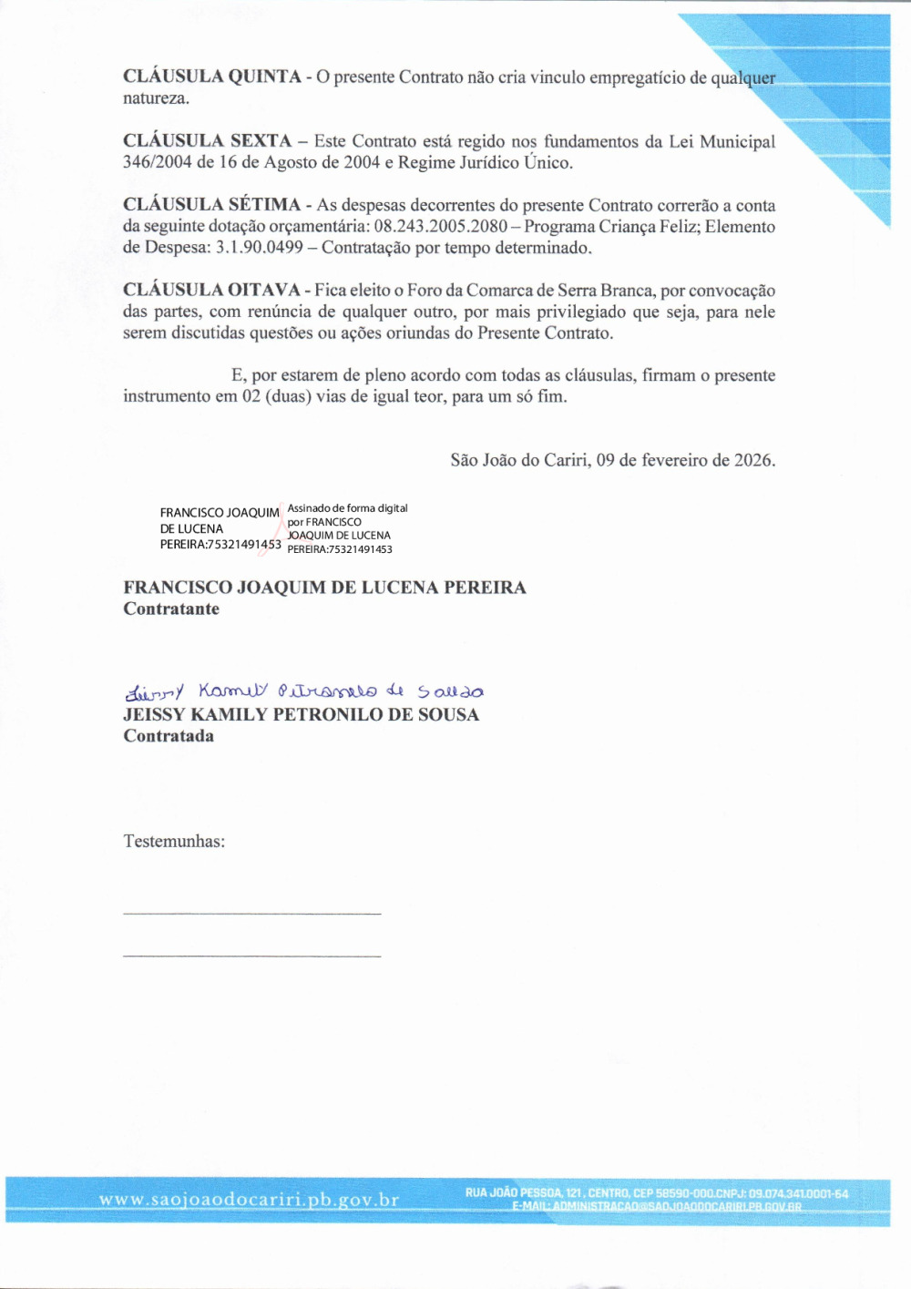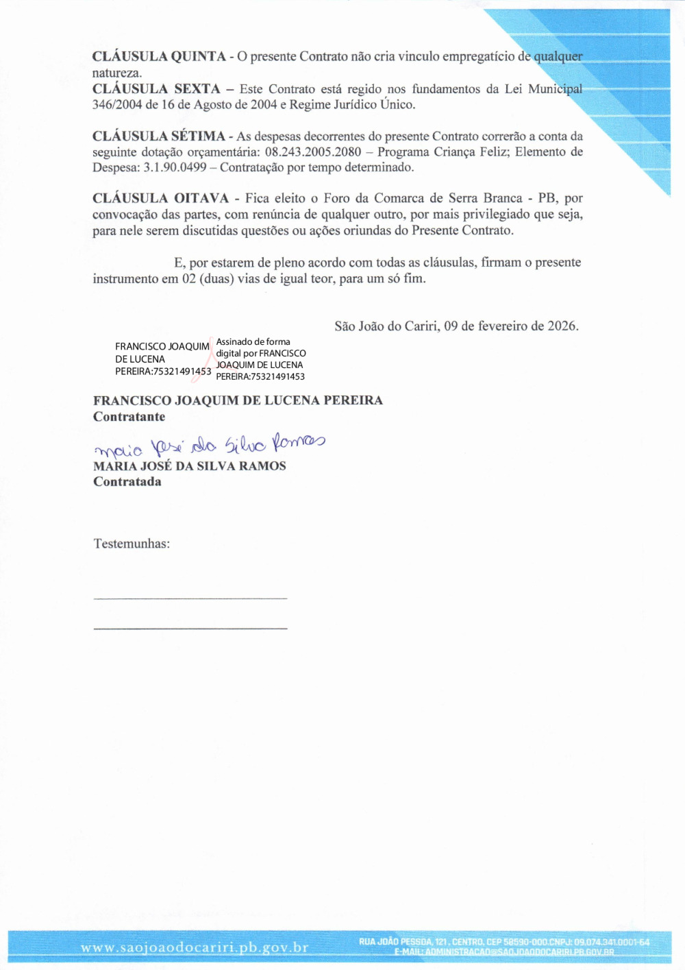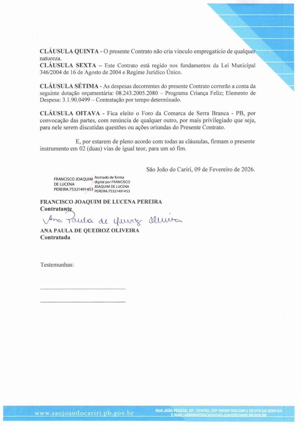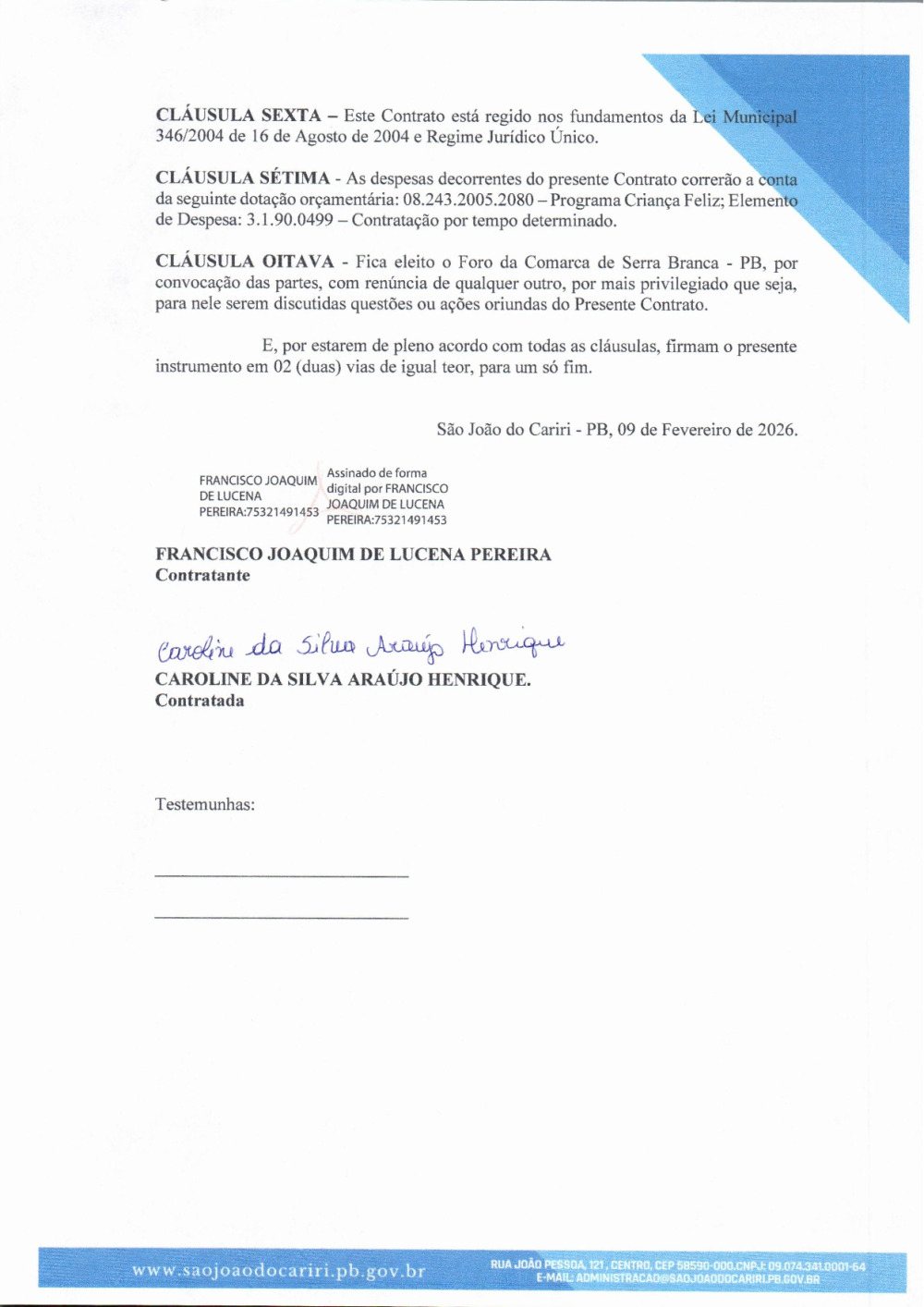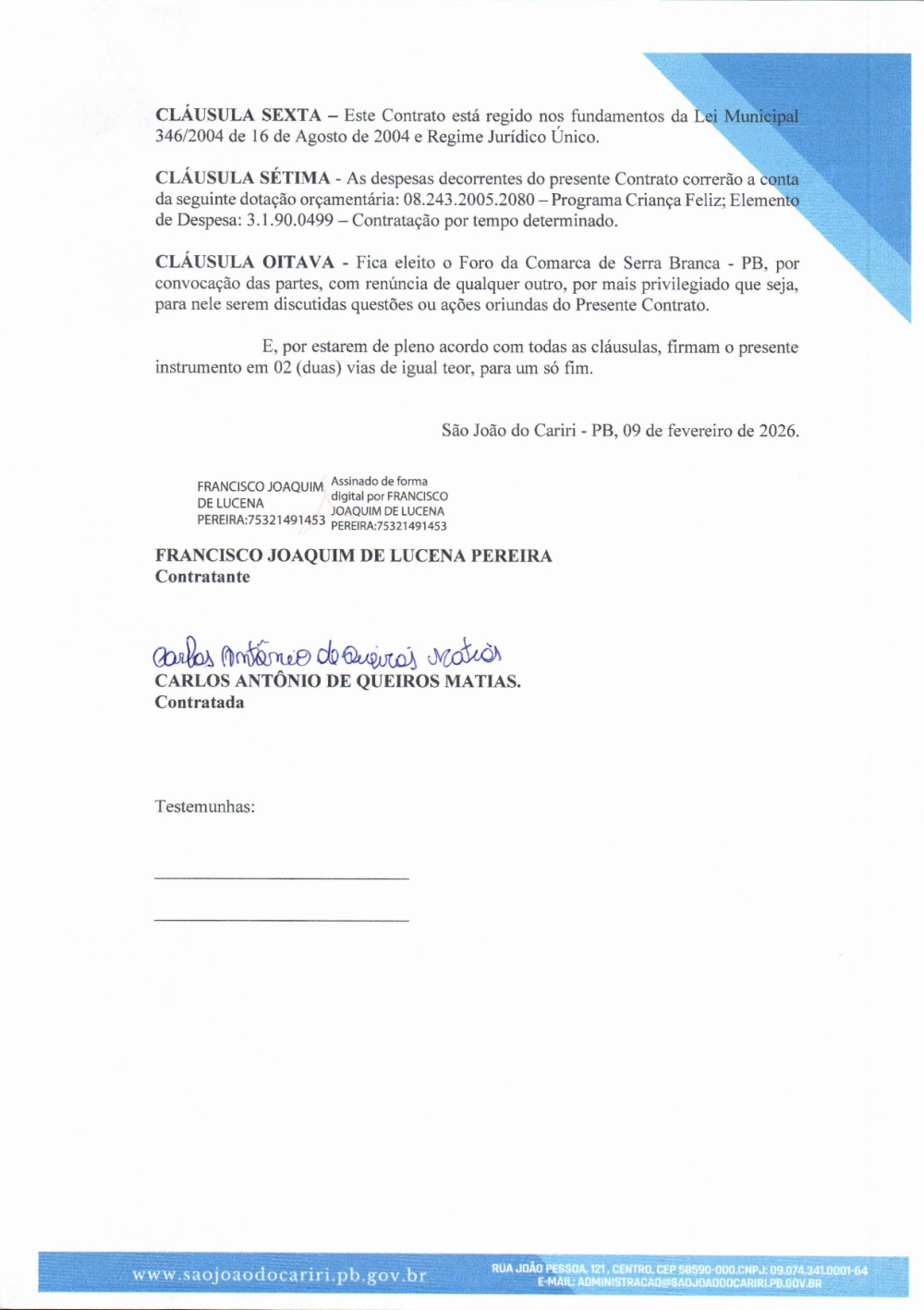 Conforme MP n° 2.200-2 de 24/08/2001, que institui a infraestrutura de chaves Públicas. Matéria Publicada no Diário Oficial do Município de São João do Cariri/PB no dia - Edição 01922.