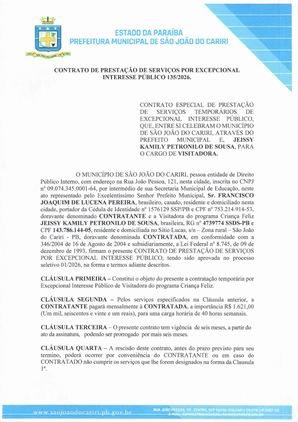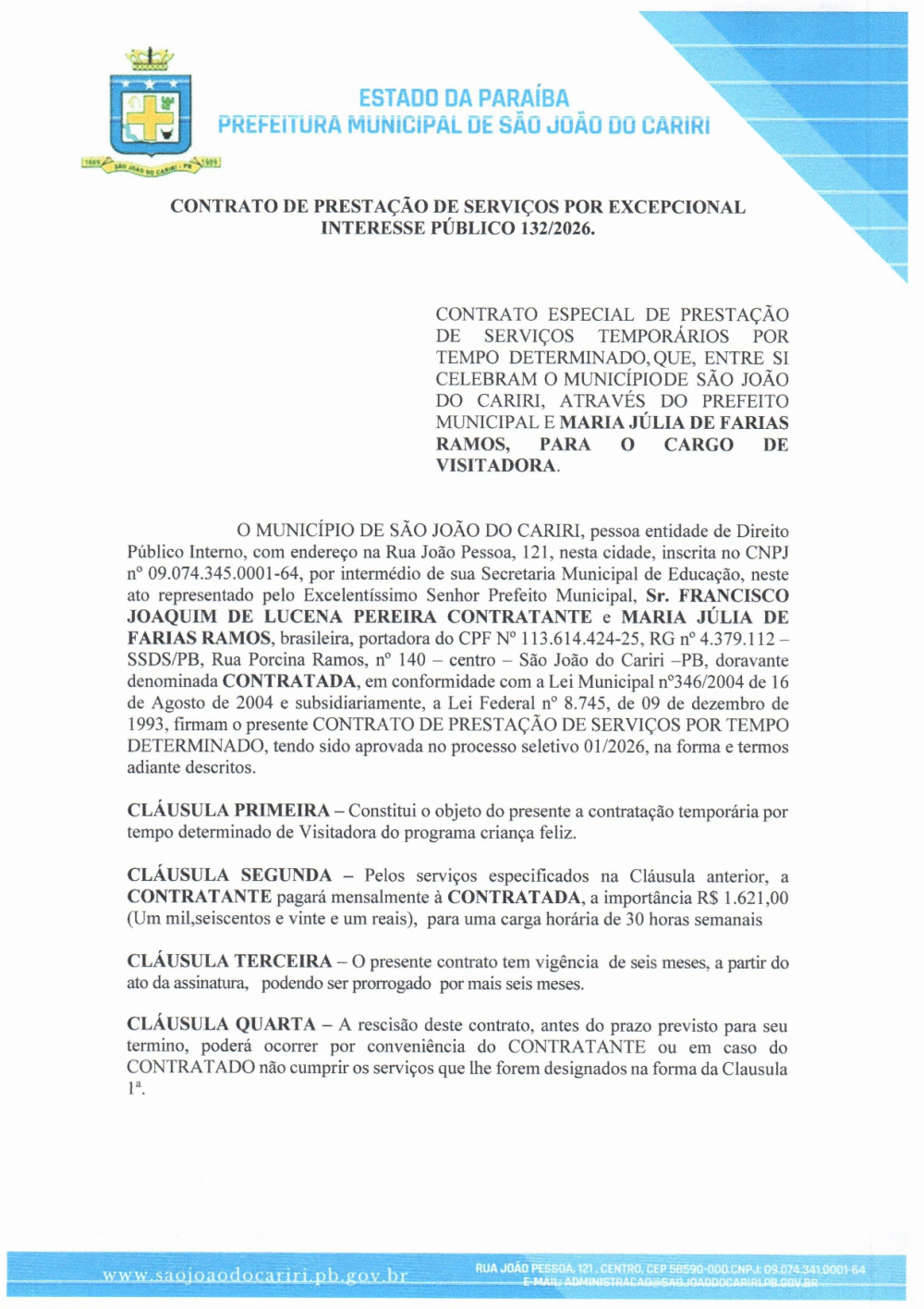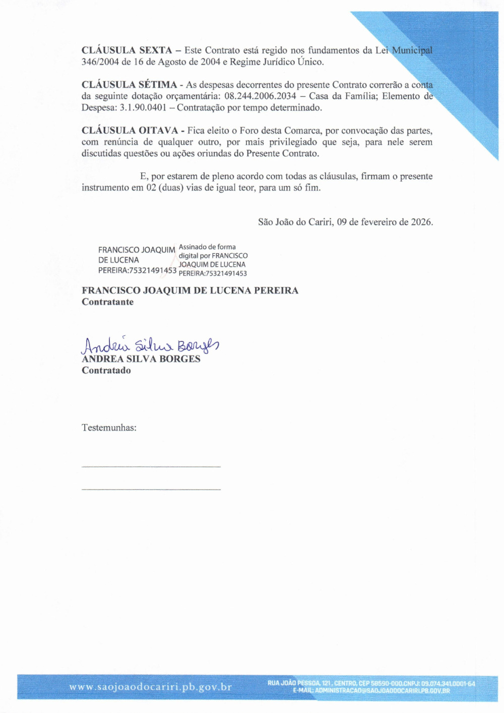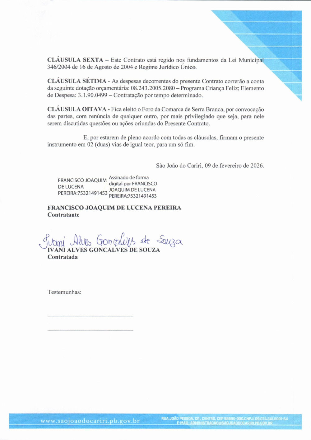 Conforme MP n° 2.200-2 de 24/08/2001, que institui a infraestrutura de chaves Públicas. Matéria Publicada no Diário Oficial do Município de São João do Cariri/PB no dia - Edição 01922.