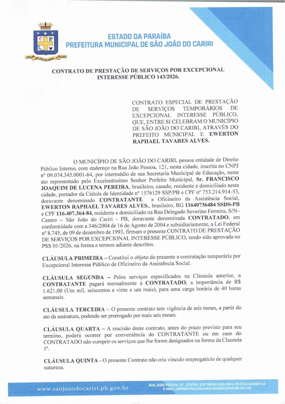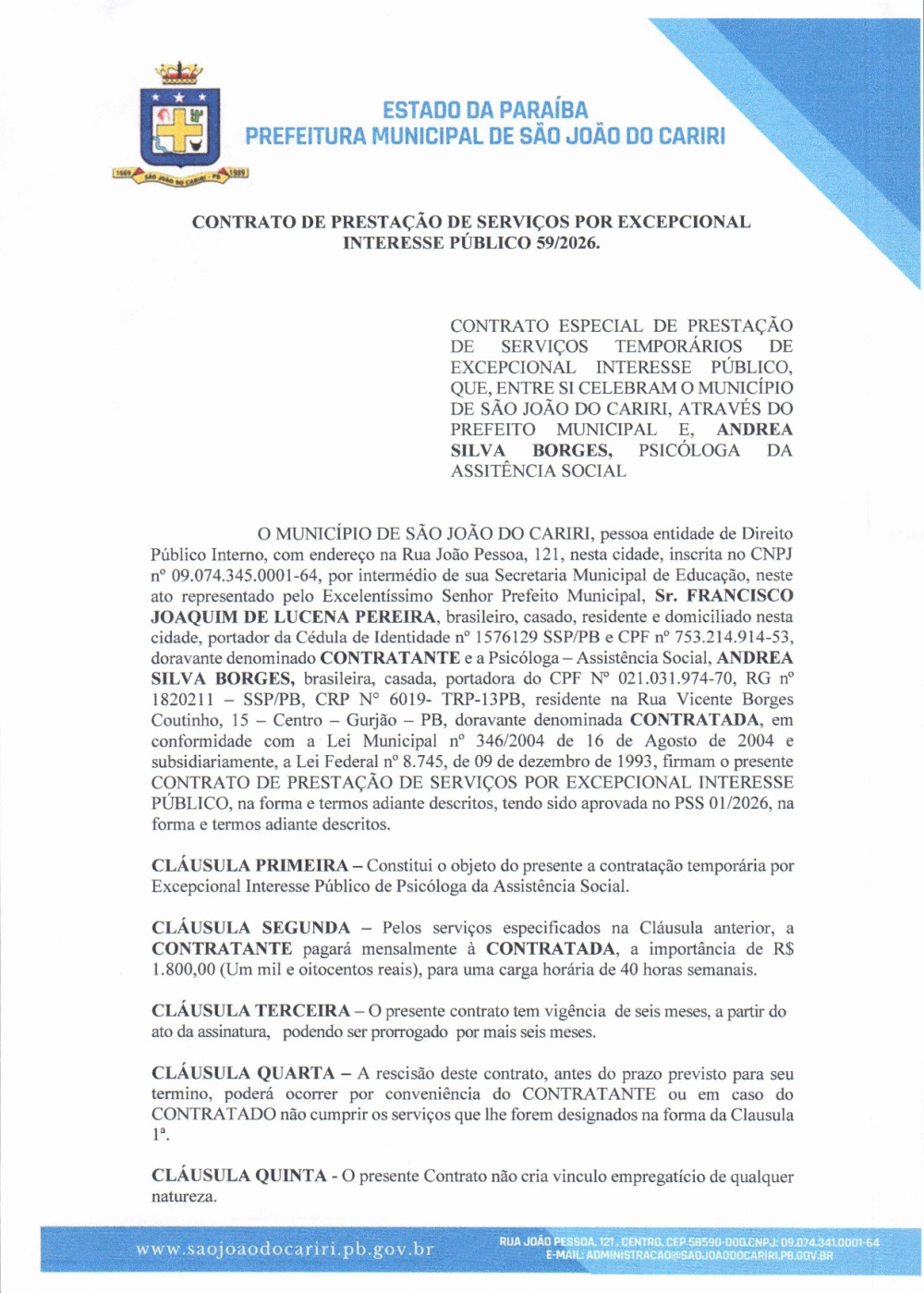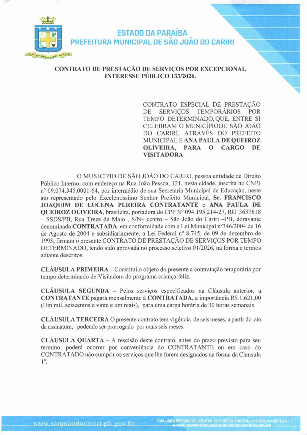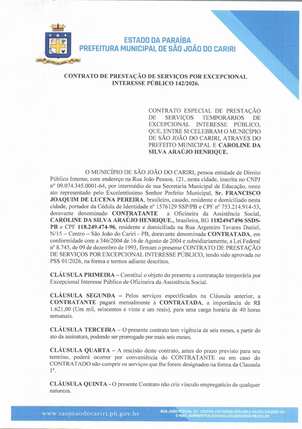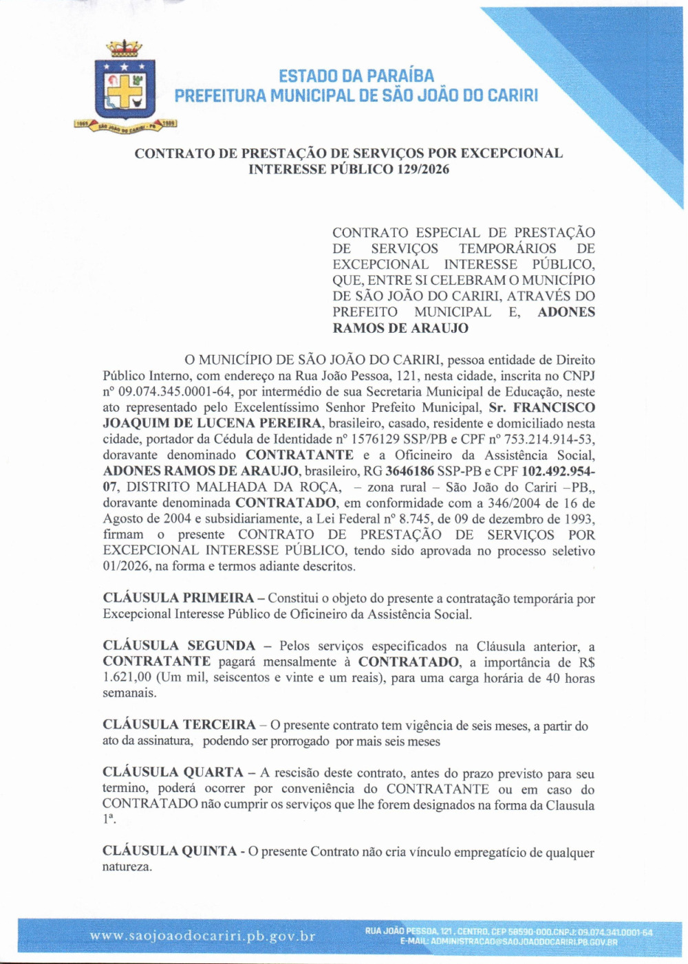 Conforme MP n° 2.200-2 de 24/08/2001, que institui a infraestrutura de chaves Públicas. Matéria Publicada no Diário Oficial do Município de São João do Cariri/PB no dia - Edição 01922.