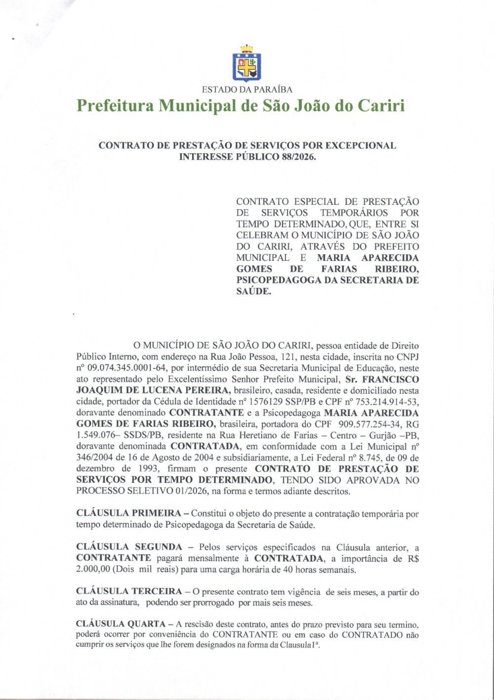 CONTRATO 88/2026 - MARIA APARECIDA GOMES DE FARIAS RIBEIRO