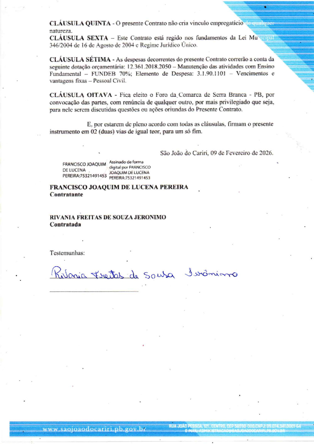 CONTRATO 13/2026 - RIVANIA FREITAS DE SOUZA JERONIMO