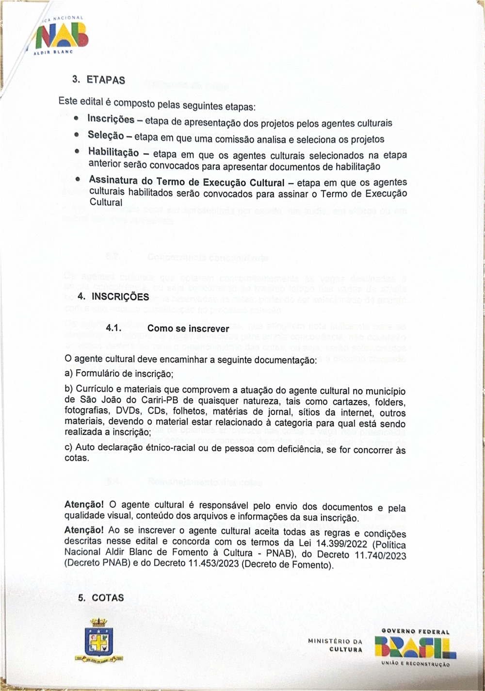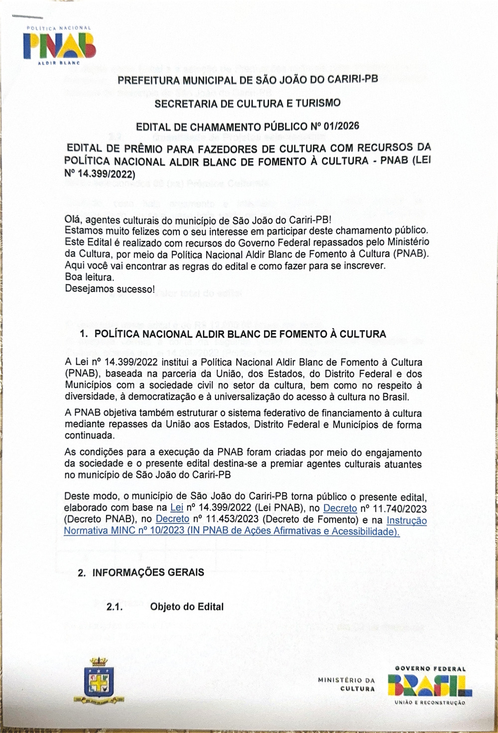 EDITAL DE CHAMAMENTO PÚBLICO Nº 0001/2026