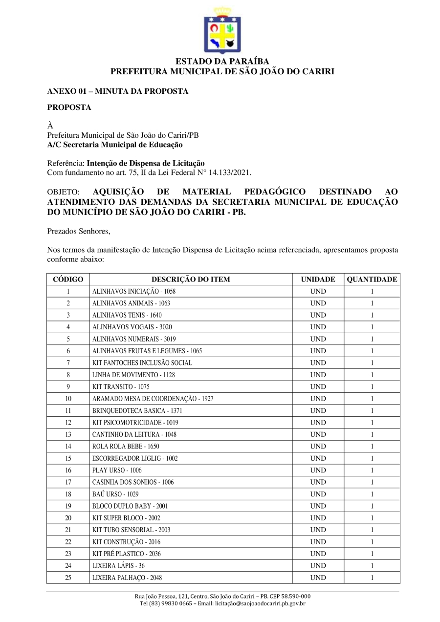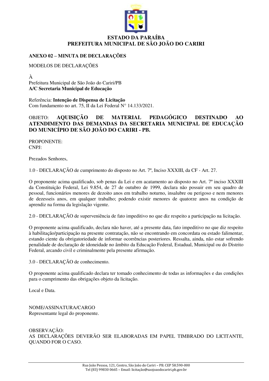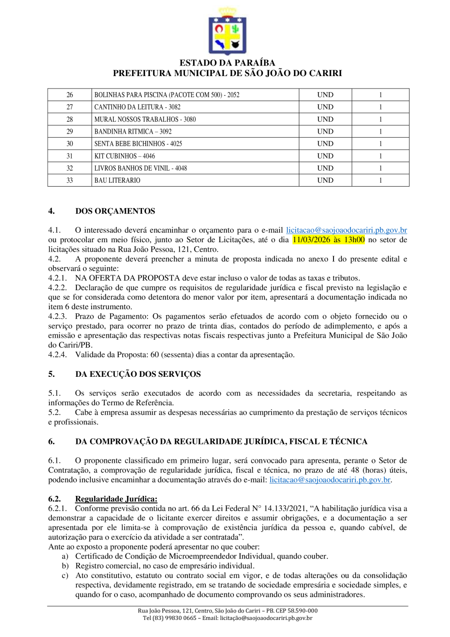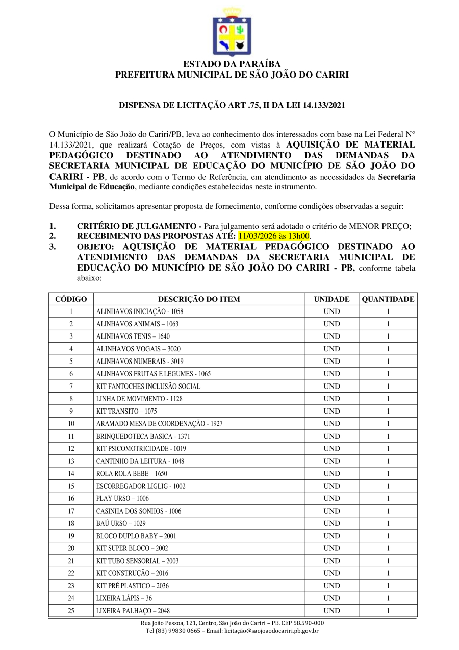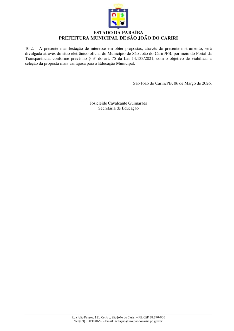 Conforme MP n° 2.200-2 de 24/08/2001, que institui a infraestrutura de chaves Públicas. Matéria Publicada no Diário Oficial do Município de São João do Cariri/PB no dia - Edição 01933.