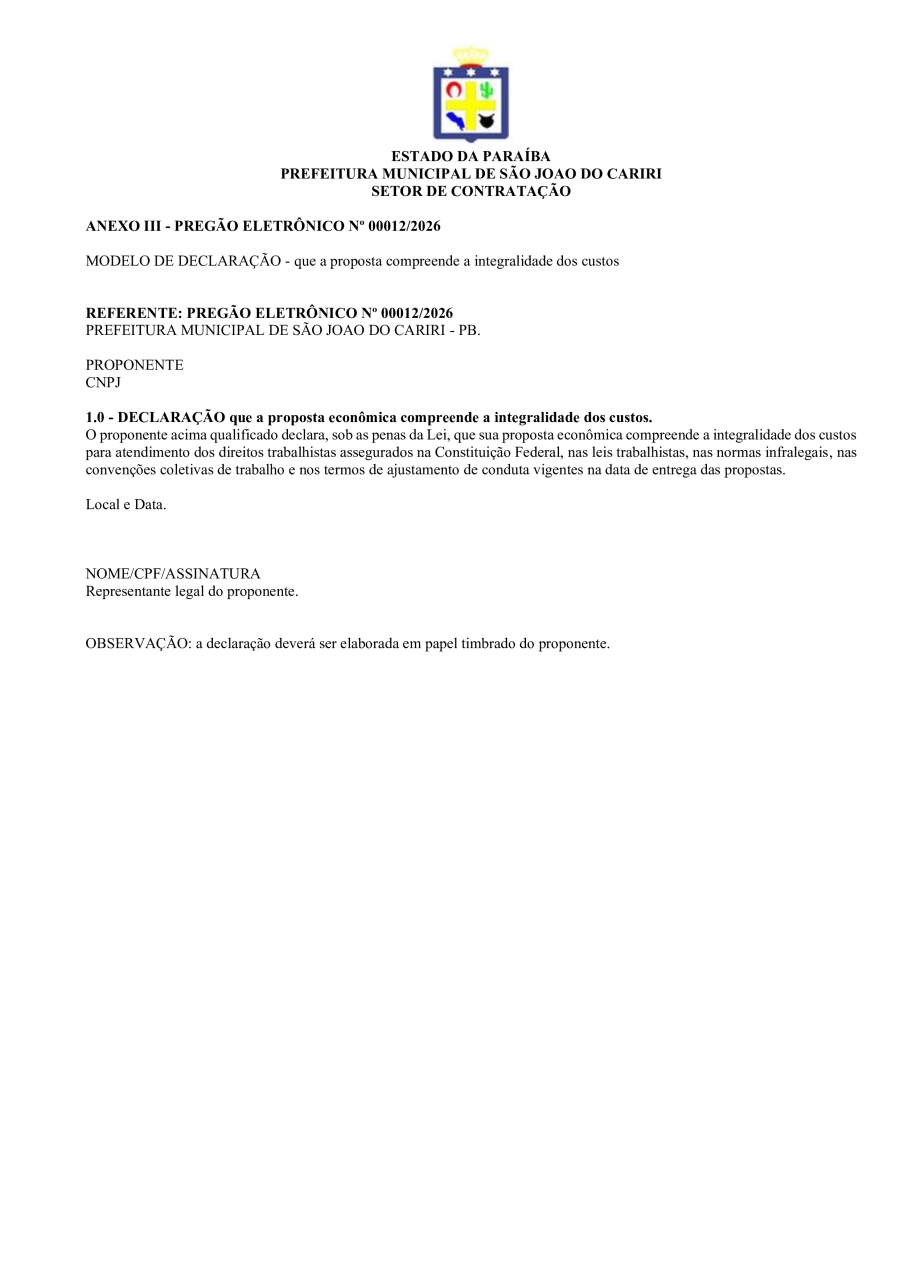 Conforme MP n° 2.200-2 de 24/08/2001, que institui a infraestrutura de chaves Públicas. Matéria Publicada no Diário Oficial do Município de São João do Cariri/PB no dia - Edição 01931.