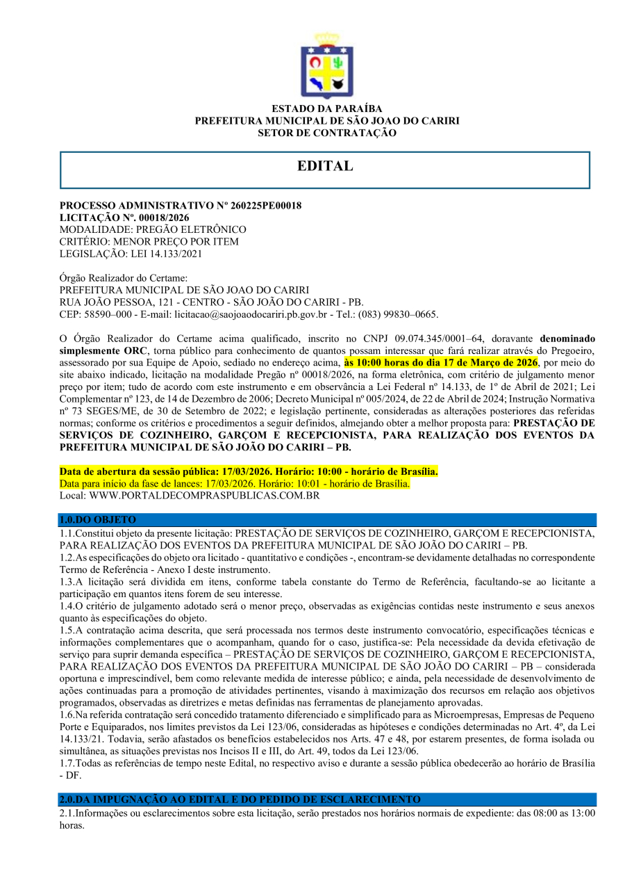 Conforme MP n° 2.200-2 de 24/08/2001, que institui a infraestrutura de chaves Públicas. Matéria Publicada no Diário Oficial do Município de São João do Cariri/PB no dia - Edição 01932.
