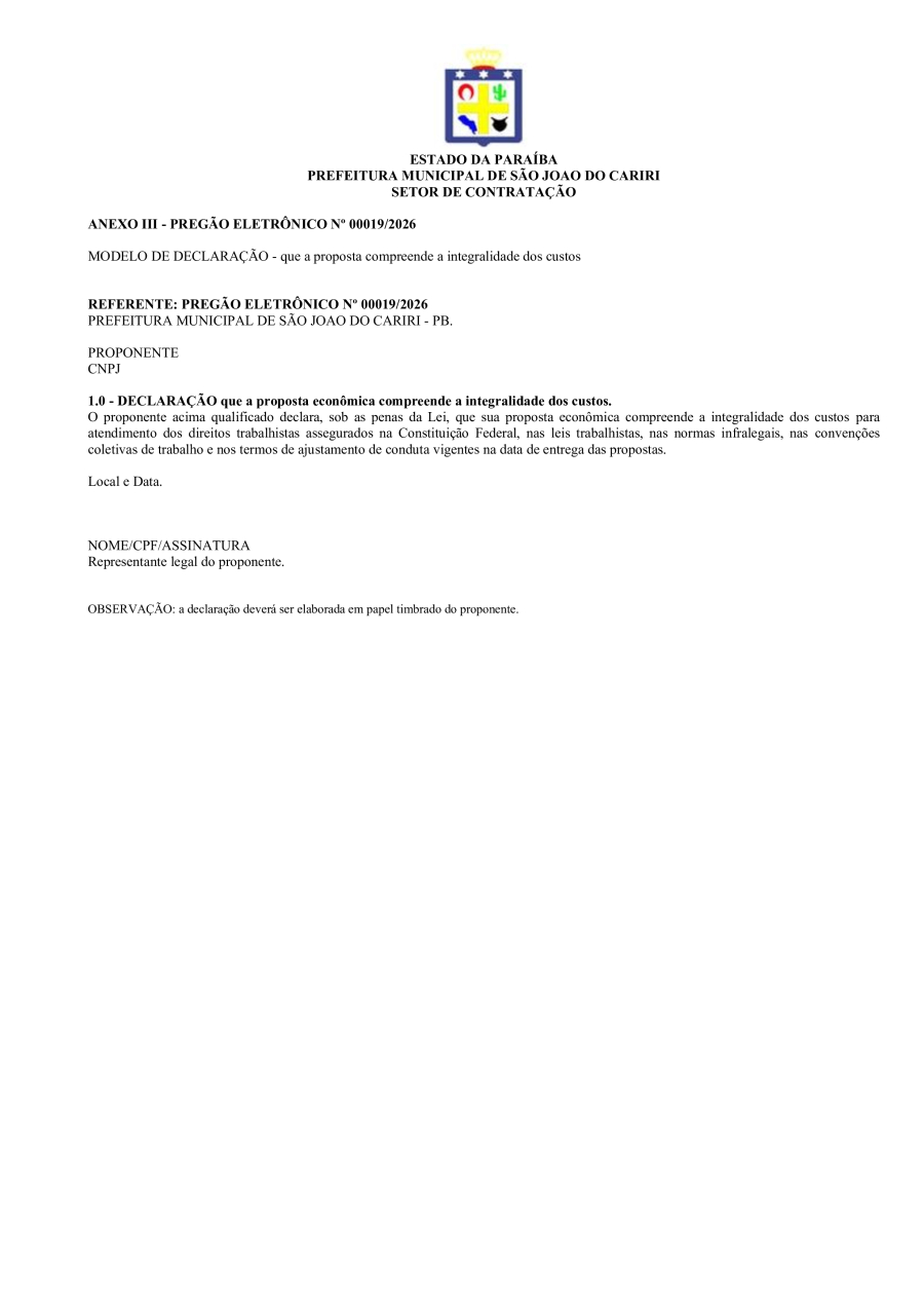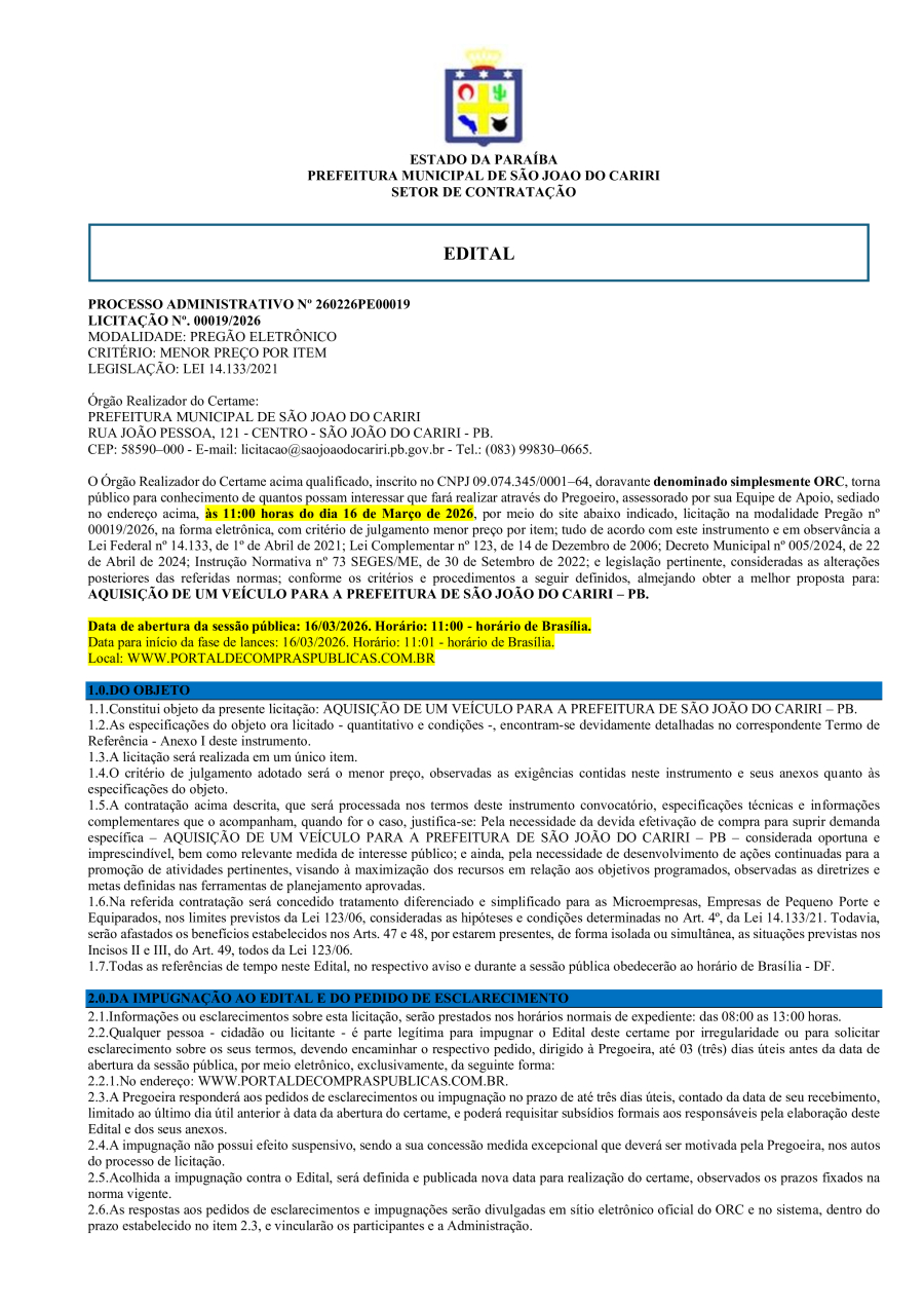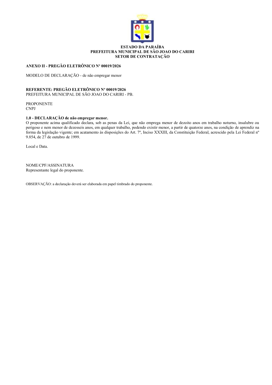 Conforme MP n° 2.200-2 de 24/08/2001, que institui a infraestrutura de chaves Públicas. Matéria Publicada no Diário Oficial do Município de São João do Cariri/PB no dia - Edição 01932.
