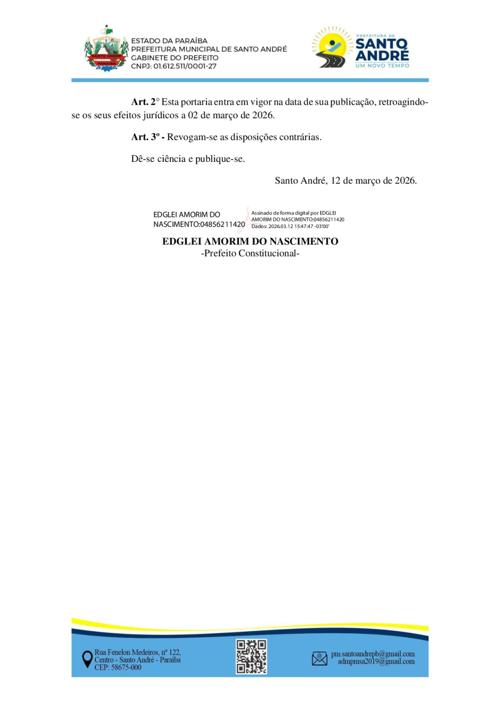 Conforme MP n° 2.200-2 de 24/08/2001, que institui a infraestrutura de chaves Públicas. Matéria Publicada no Diário Oficial do Município de Santo André/PB no dia - Edição 01418.