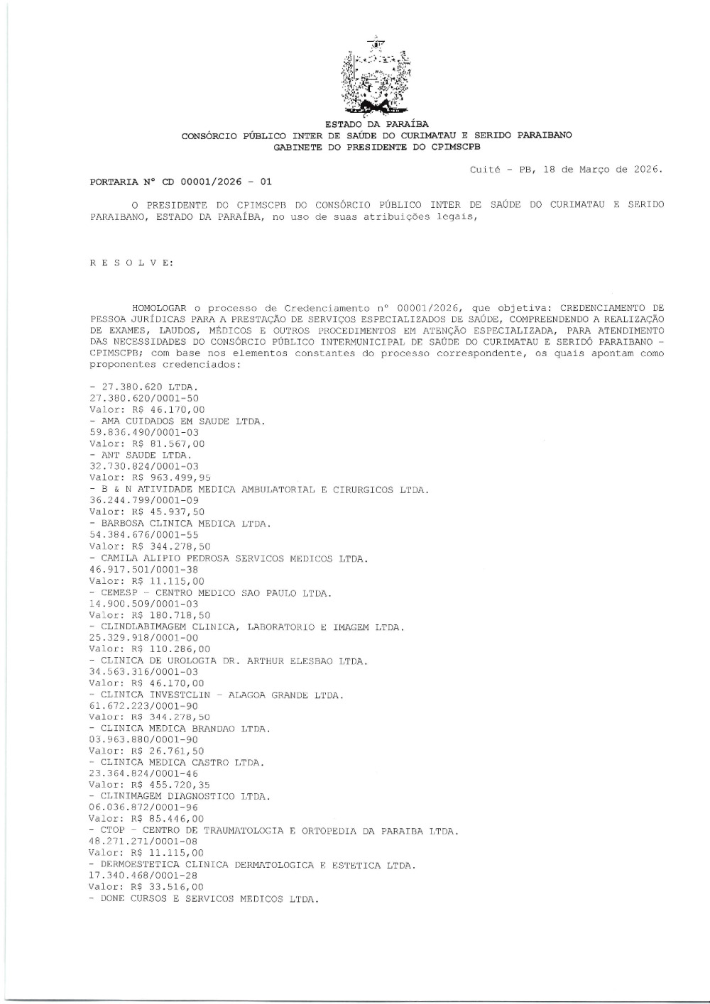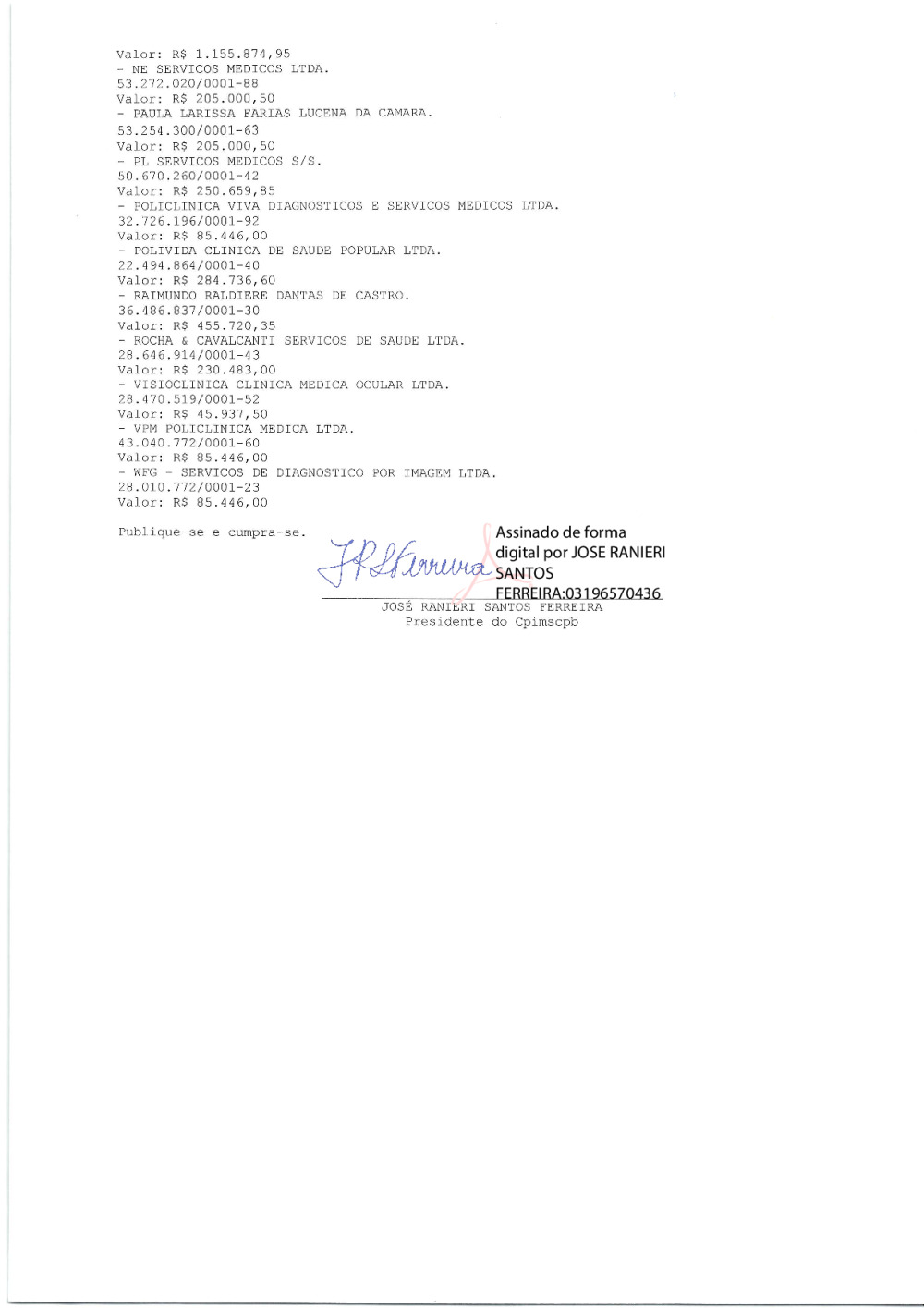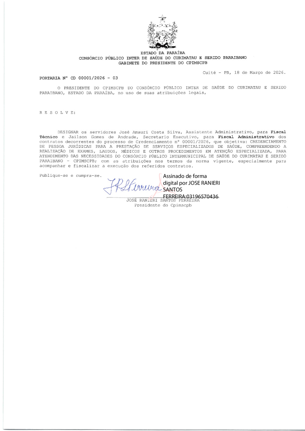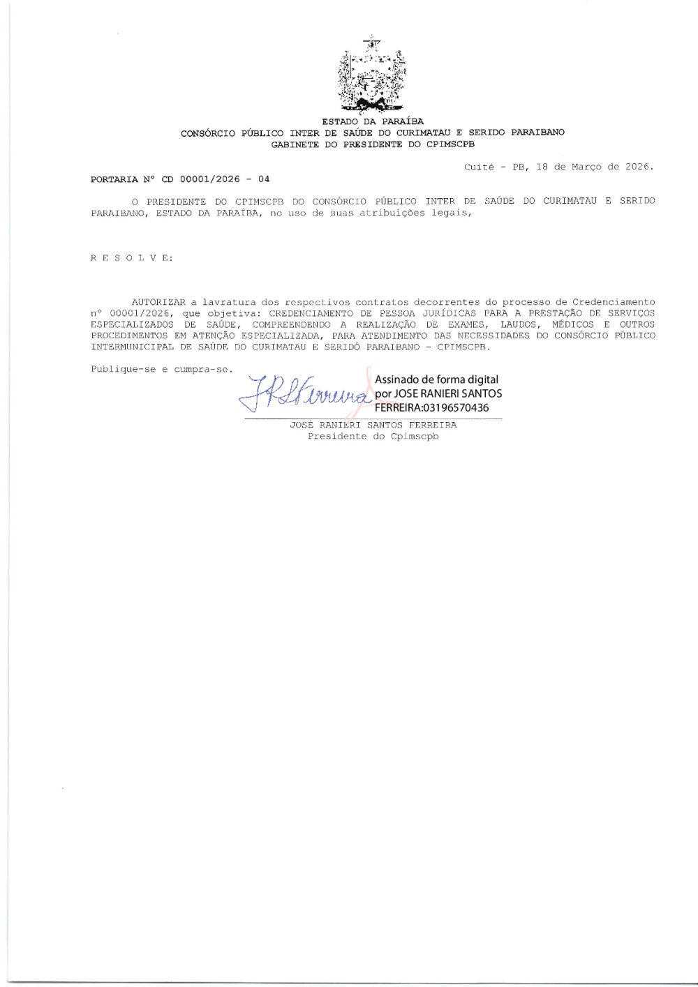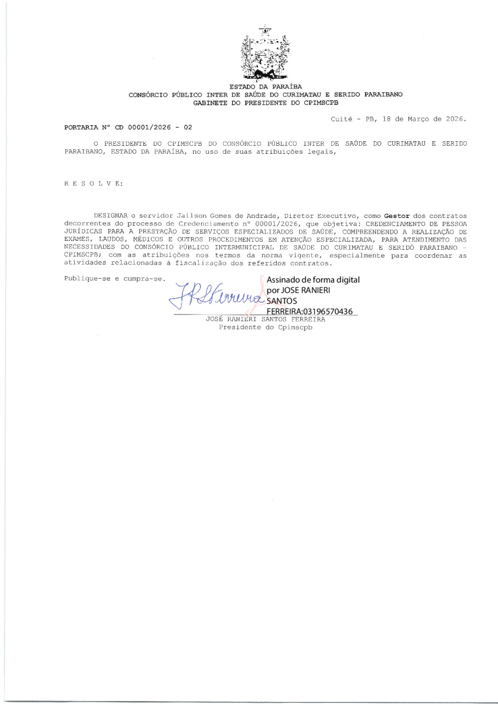 Conforme MP n° 2.200-2 de 24/08/2001, que institui a infraestrutura de chaves Públicas. Matéria Publicada no Diário Oficial do Consórcio Intermunicipal de Saúde do Curimataú e Seridó Paraibano/PB no dia - Edição 01436.