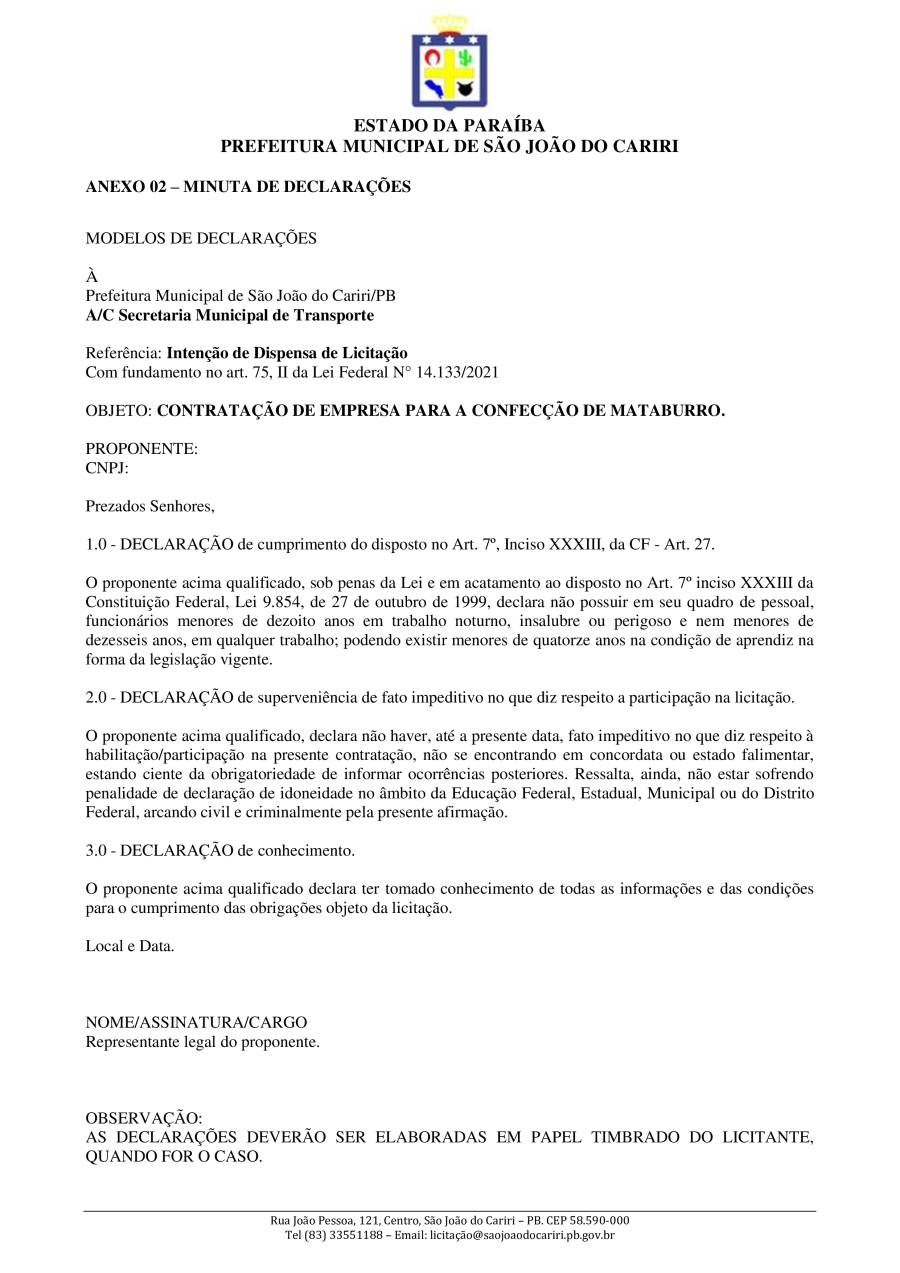 Conforme MP n° 2.200-2 de 24/08/2001, que institui a infraestrutura de chaves Públicas. Matéria Publicada no Diário Oficial do Município de São João do Cariri/PB no dia - Edição 01951.