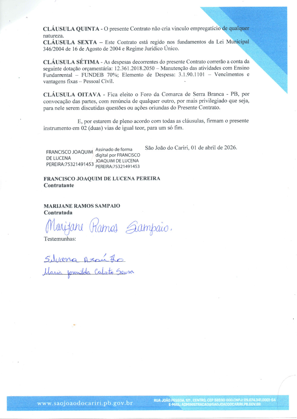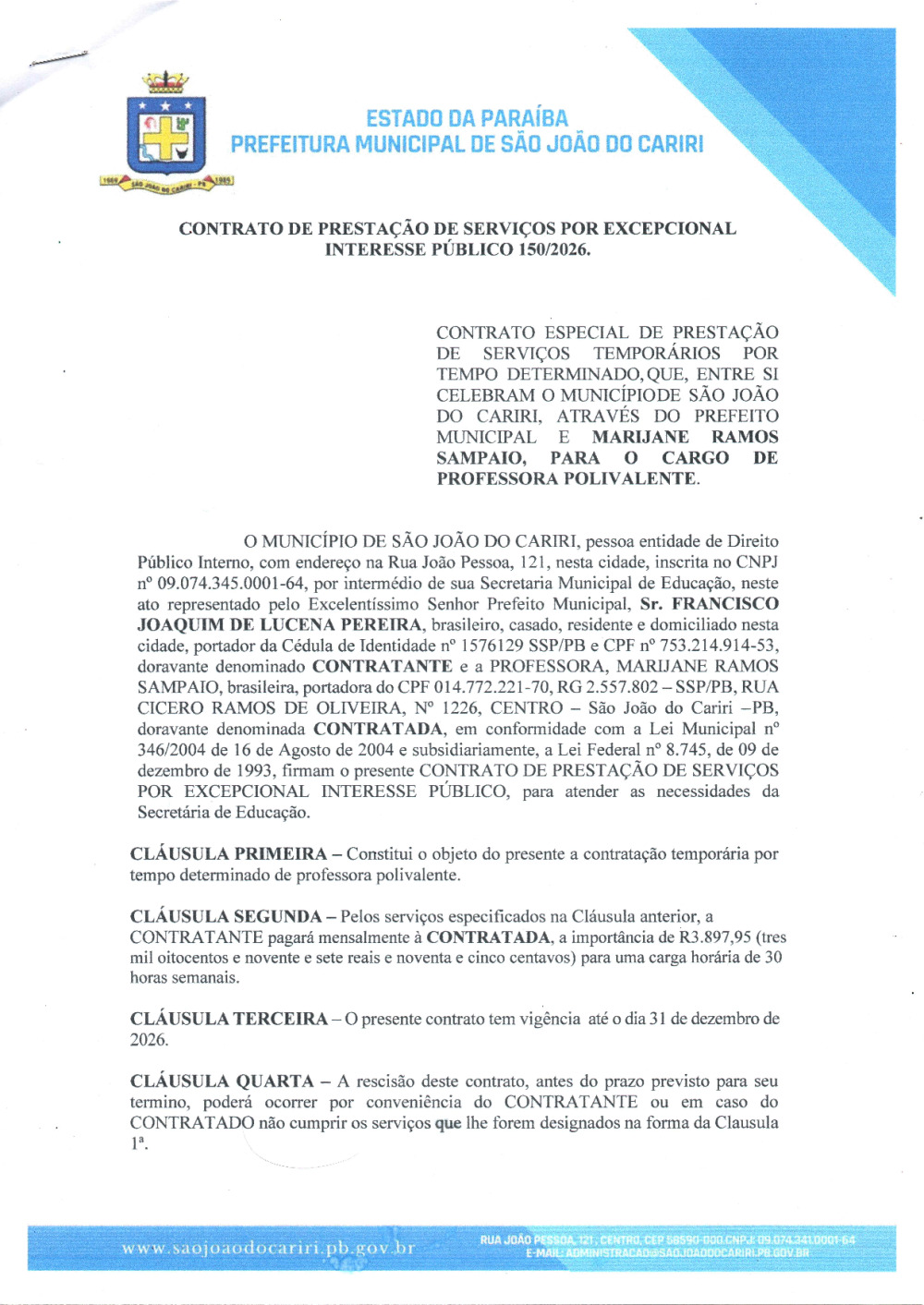 CONTRATO 150/2026 - MARIJANE RAMOS SAMPAIO