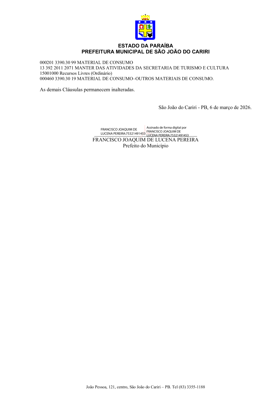 Conforme MP n° 2.200-2 de 24/08/2001, que institui a infraestrutura de chaves Públicas. Matéria Publicada no Diário Oficial do Município de São João do Cariri/PB no dia - Edição 01934.