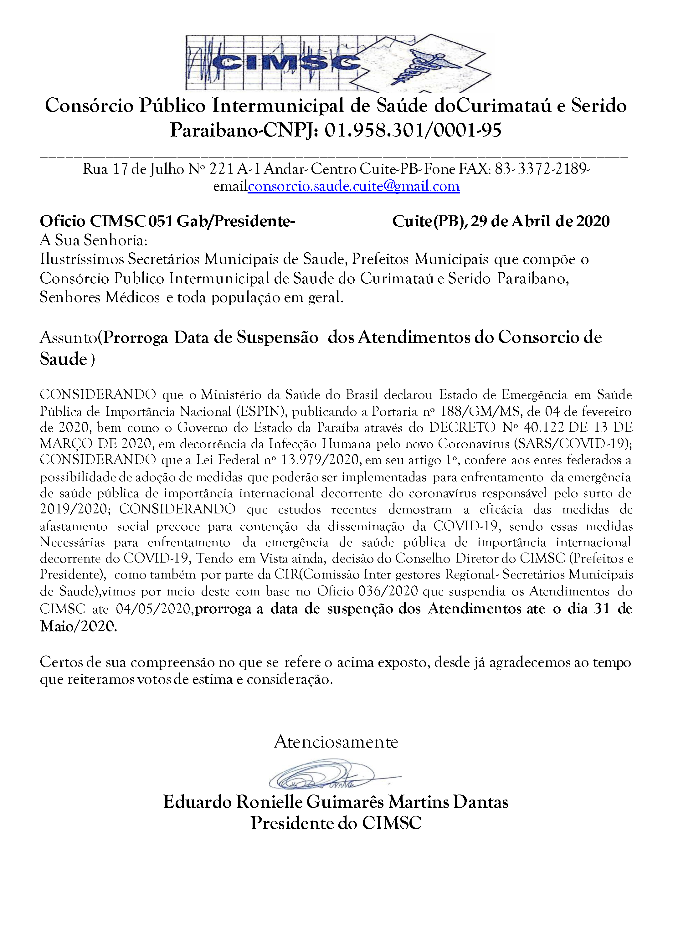 OFICIO CIMSC 051 GAB/PRESIDENTE