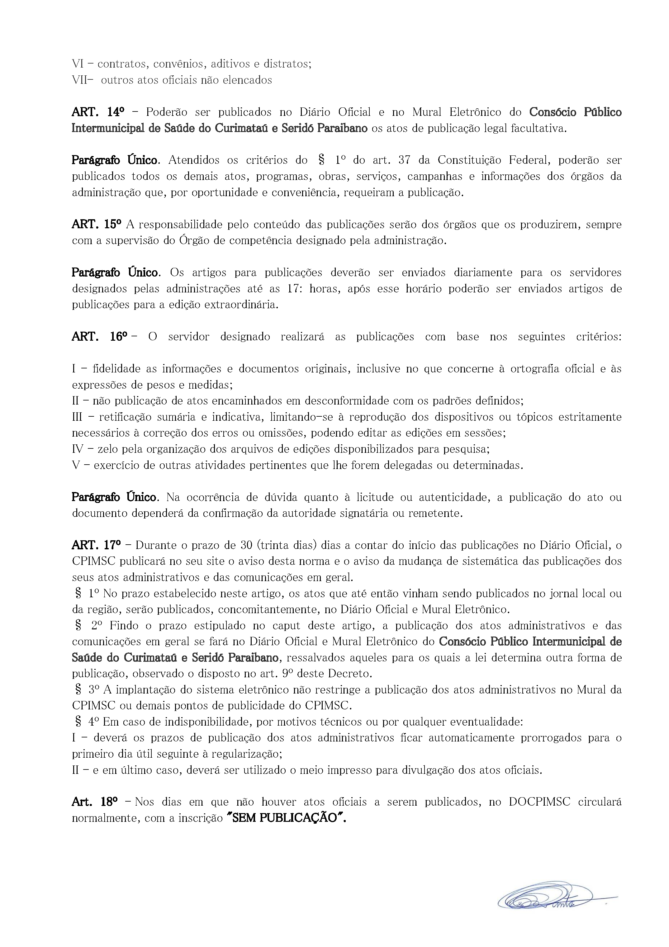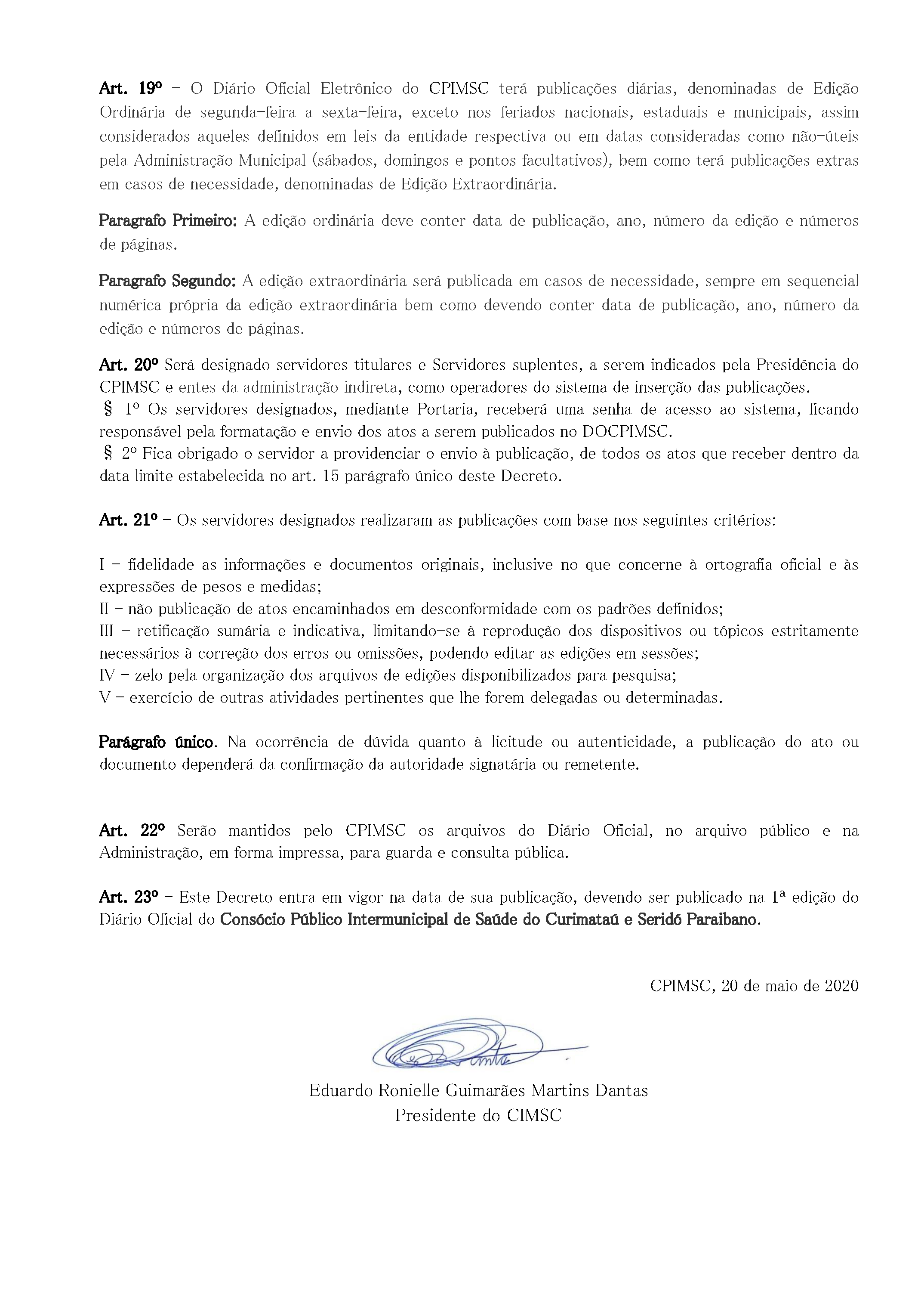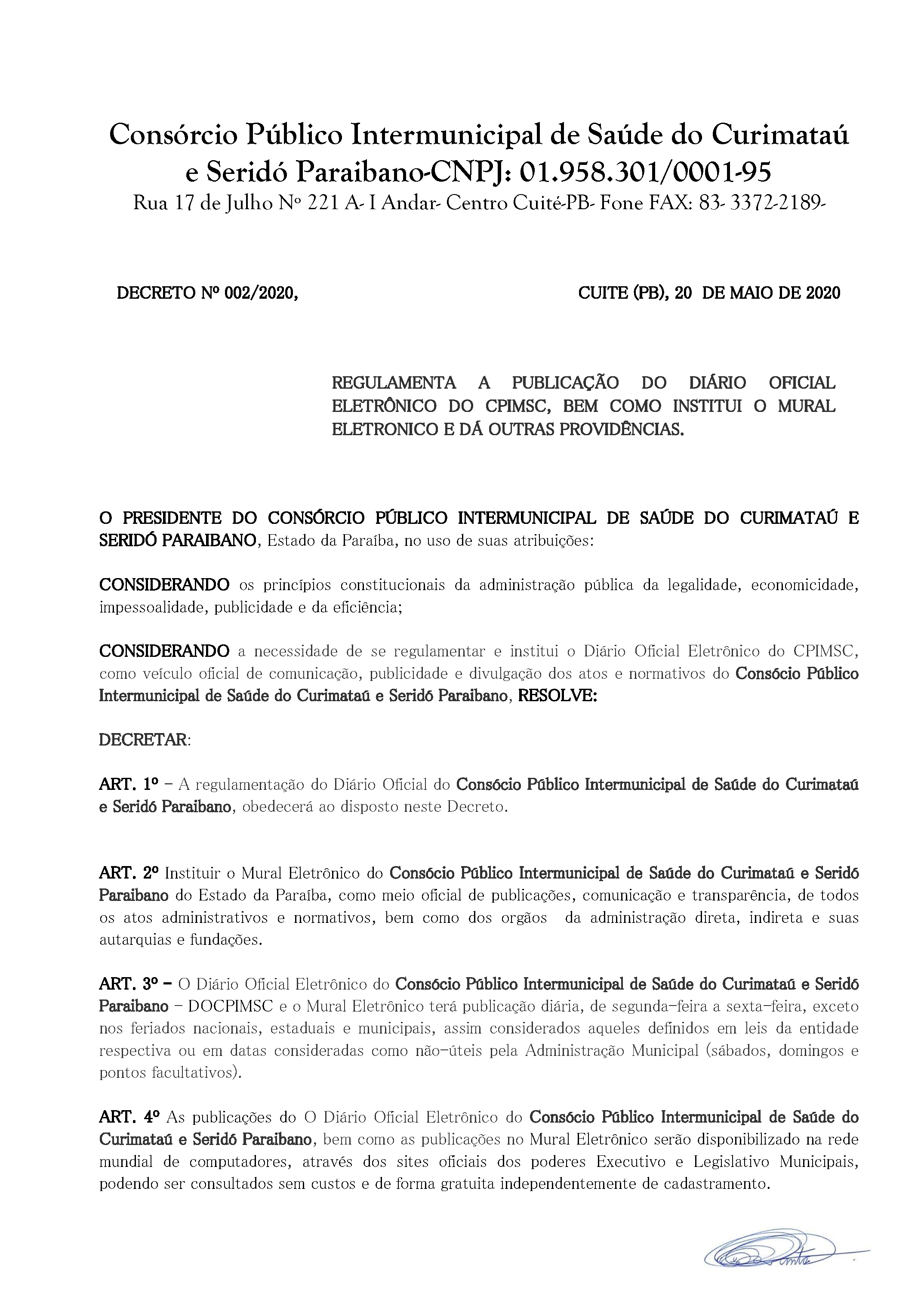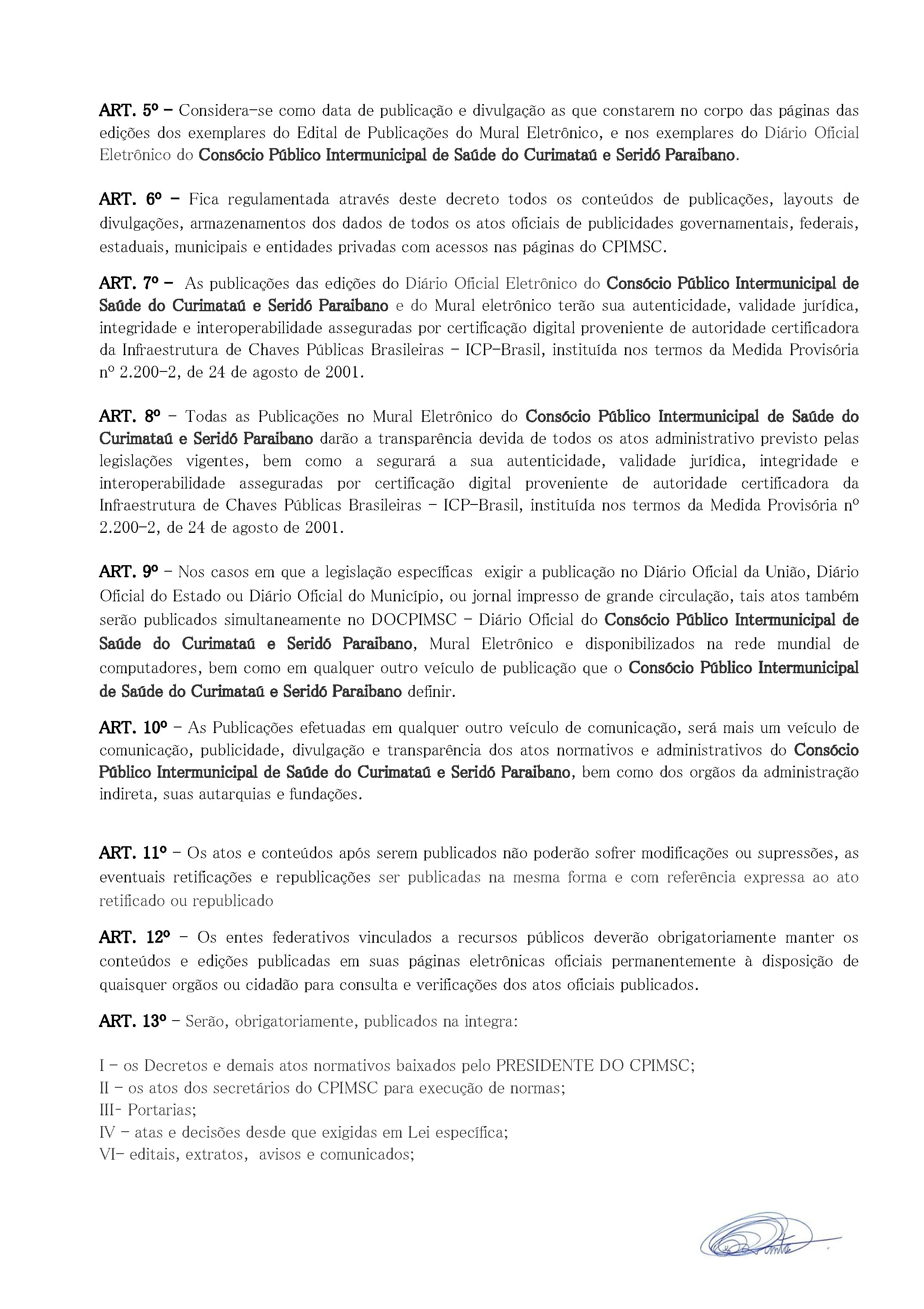 Conforme MP n° 2.200-2 de 24/08/2001, que institui a infraestrutura de chaves Públicas. Matéria Publicada no Diário Oficial do Consórcio Intermunicipal de Saúde do Curimataú e Seridó Paraibano/PB no dia - Edição 00001.