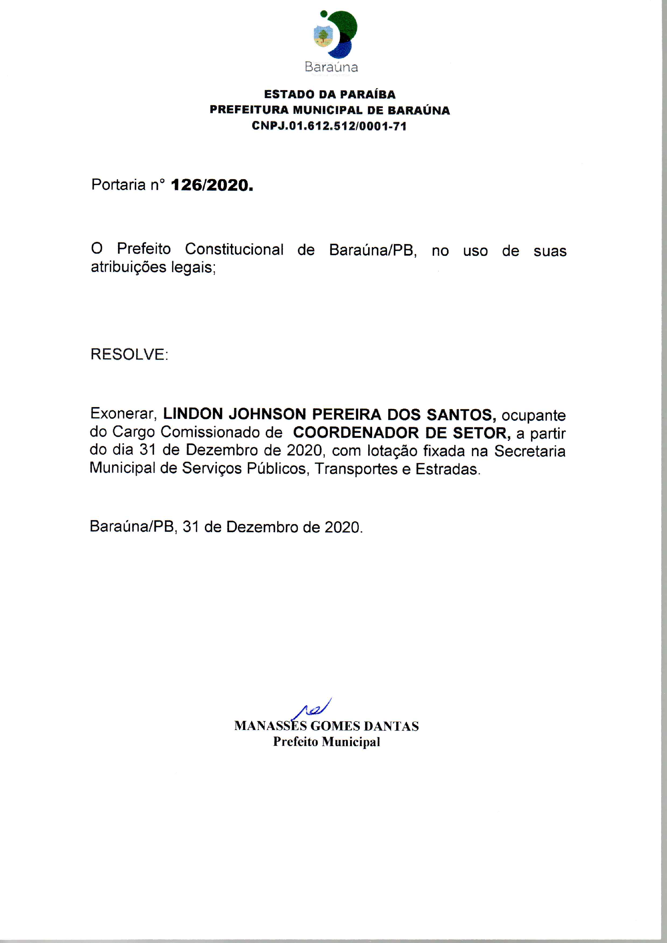 PORTARIA Nº 126/2020 - 31/12/2020