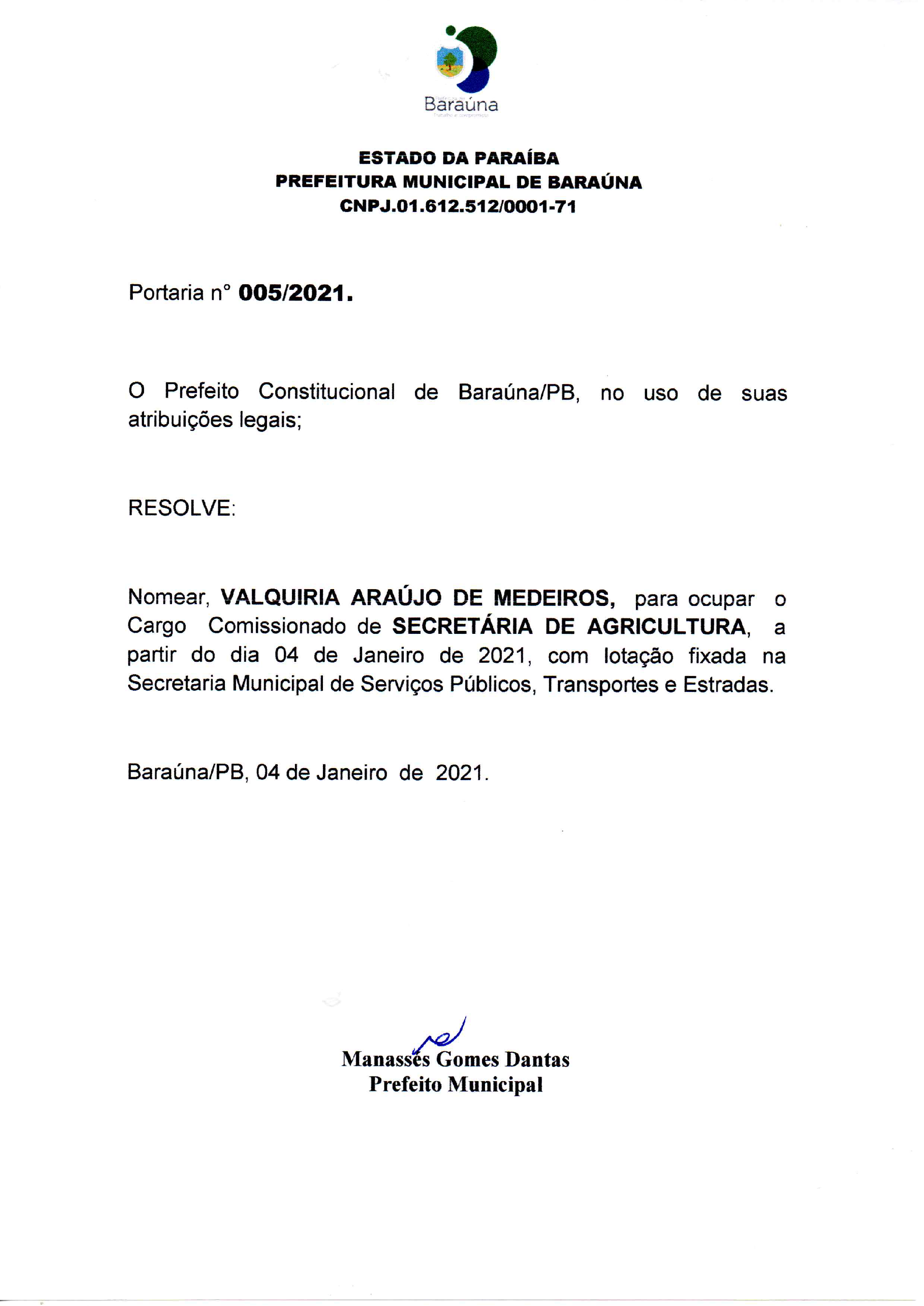 PORTARIA Nº 005/2021- 04/01/2021