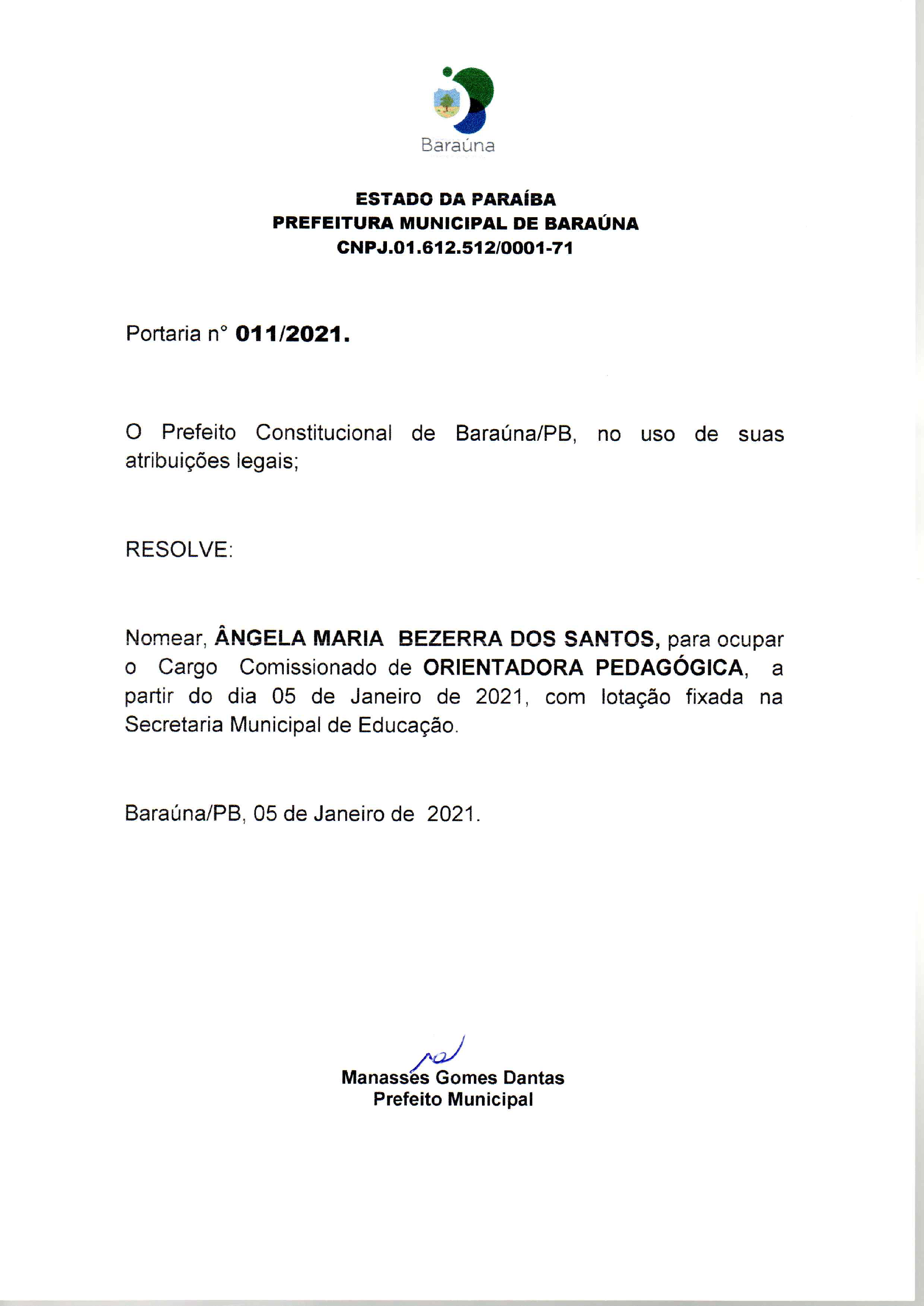 PORTARIA Nº 011/2021 - 05/01/2021