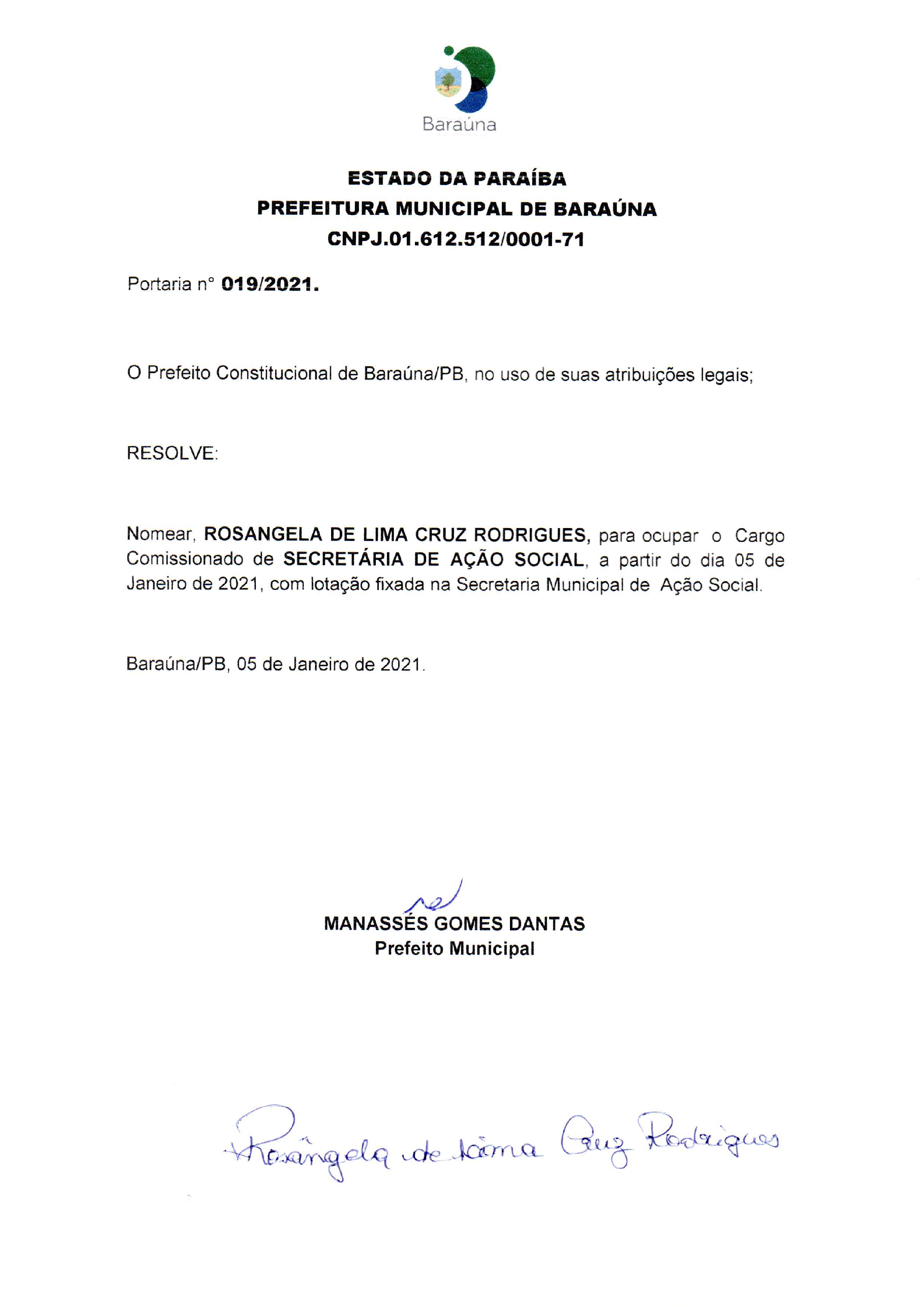 PORTARIA Nº 019/2021 - 05/01/2021