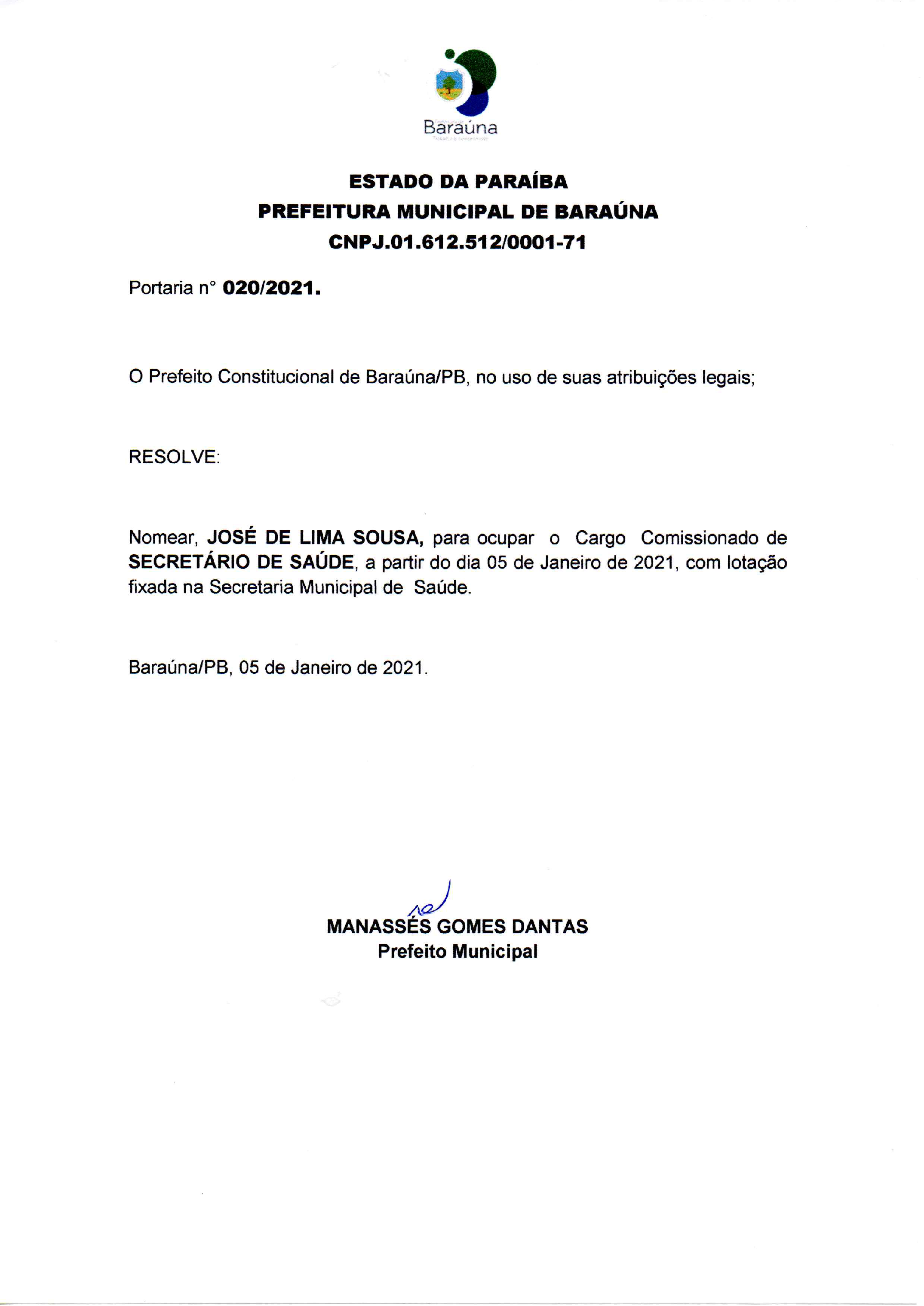 PORTARIA Nº 020/2021 - 05/01/2021