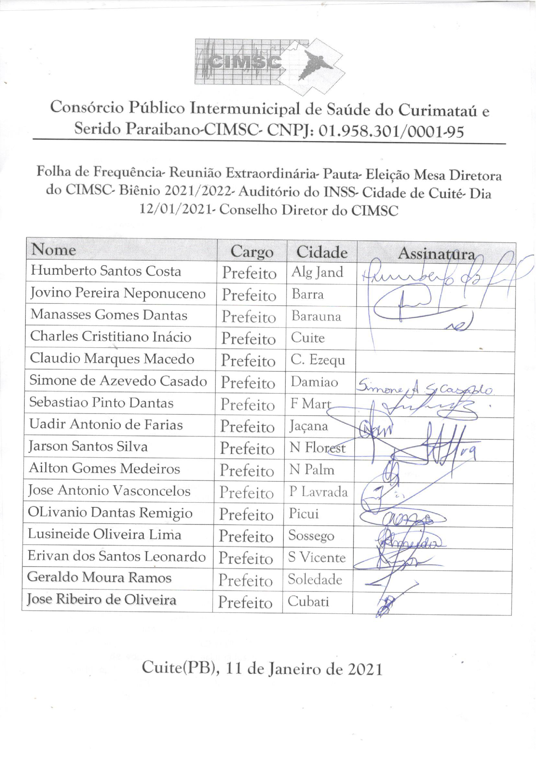 Conforme MP n° 2.200-2 de 24/08/2001, que institui a infraestrutura de chaves Públicas. Matéria Publicada no Diário Oficial do Consórcio Intermunicipal de Saúde do Curimataú e Seridó Paraibano/PB no dia - Edição 00158.