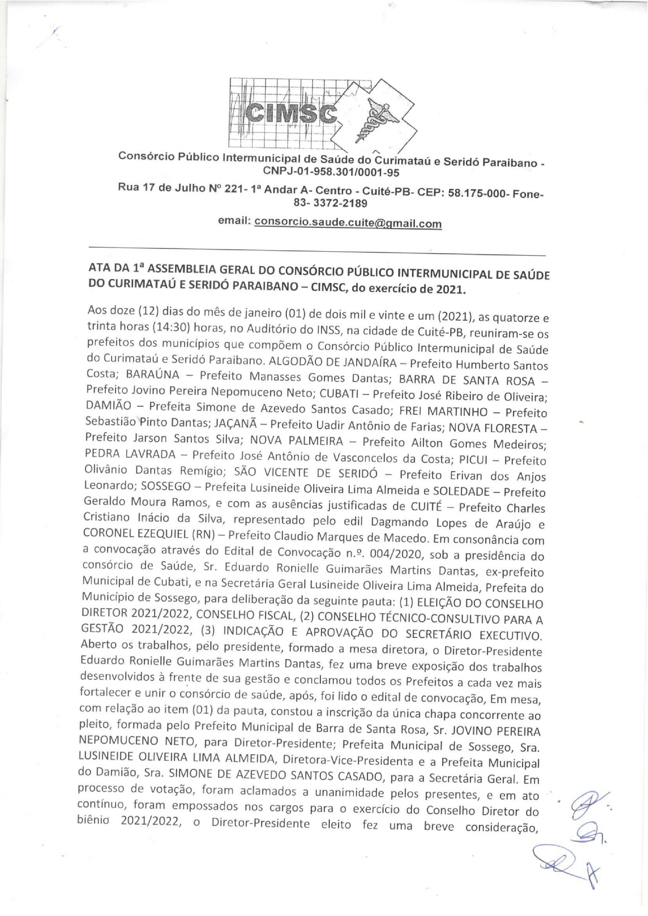 ATA DA 1ª ASSEMBLÉIA GERAL - 14 DE JANEIRO DE 2021
