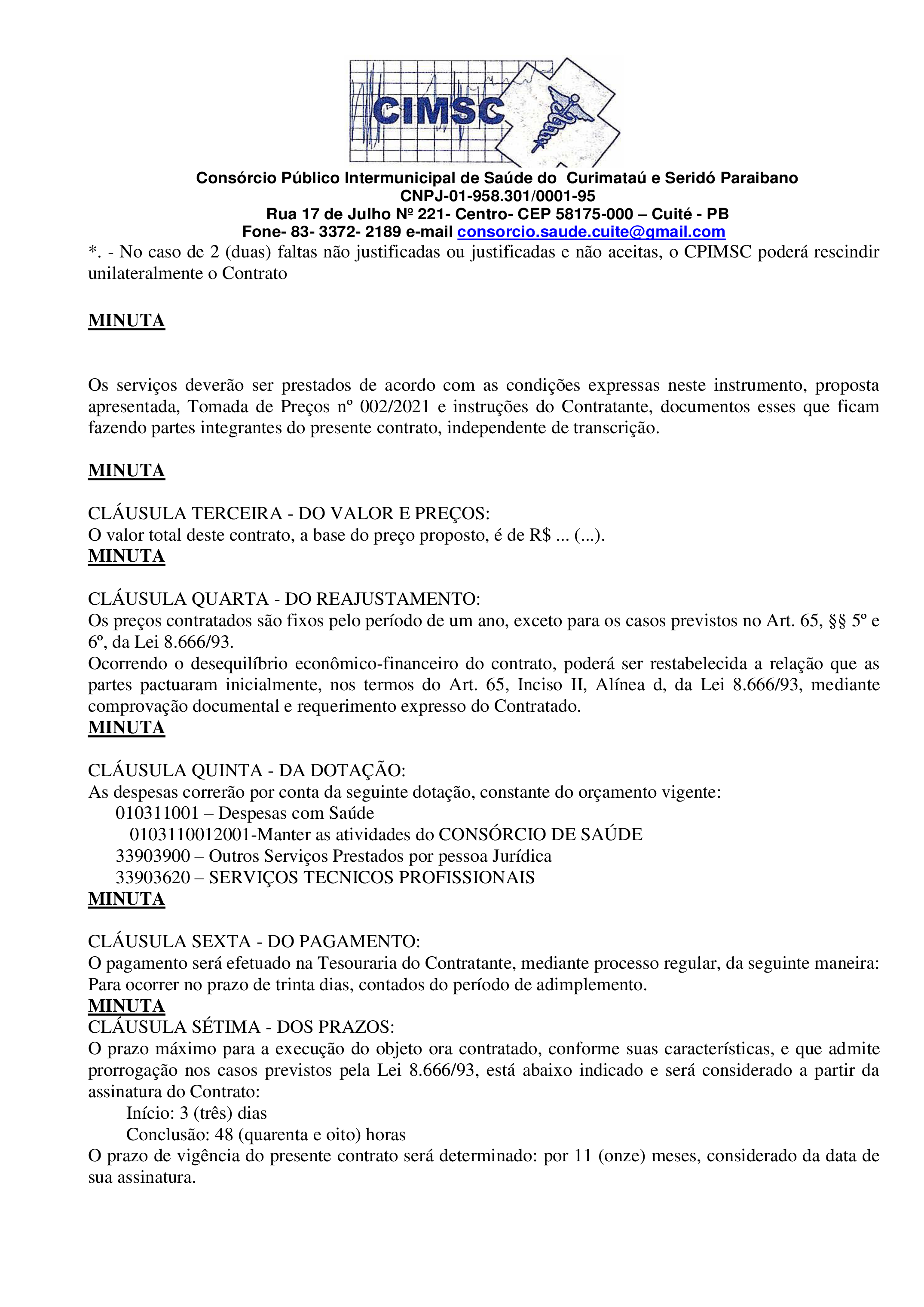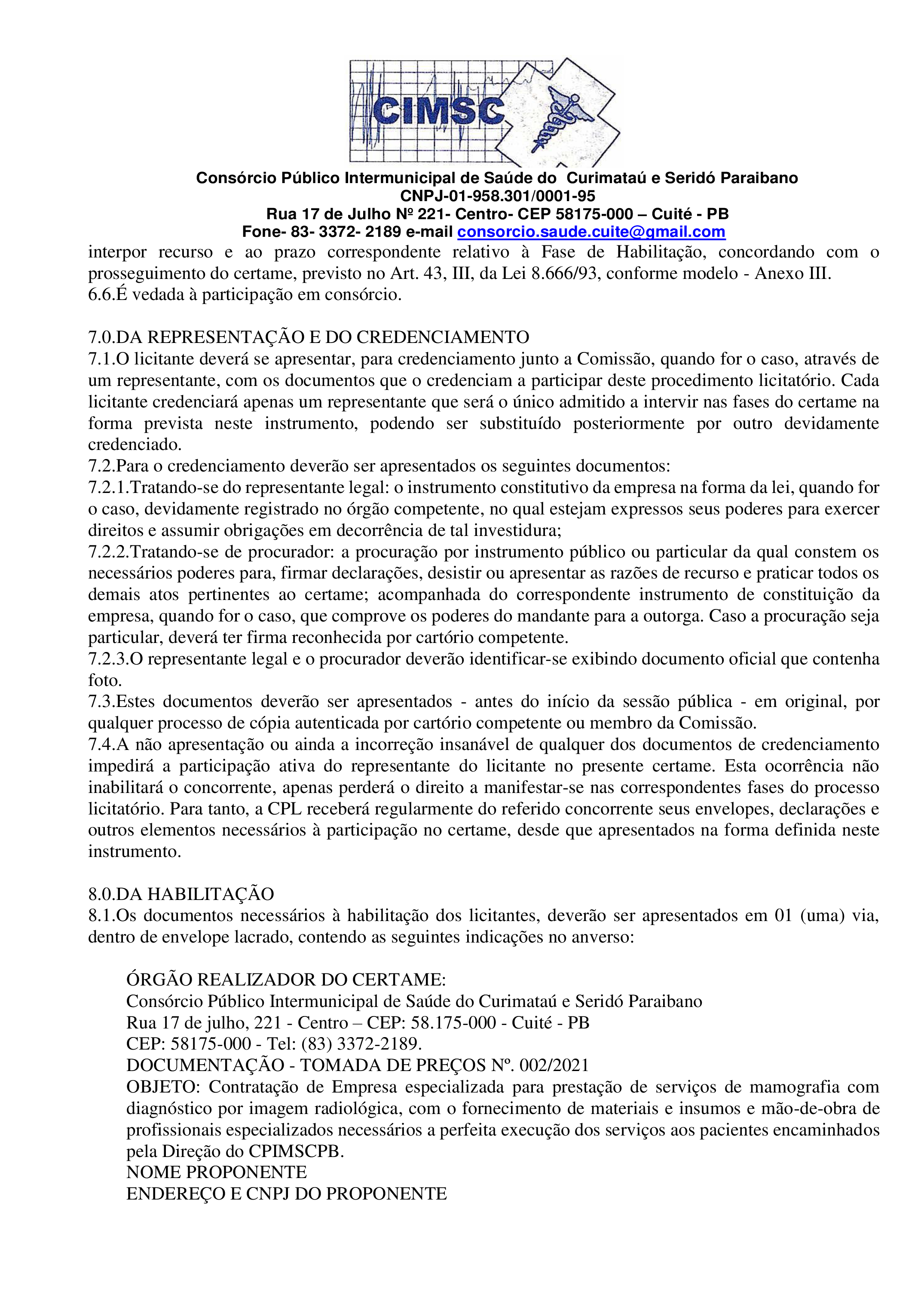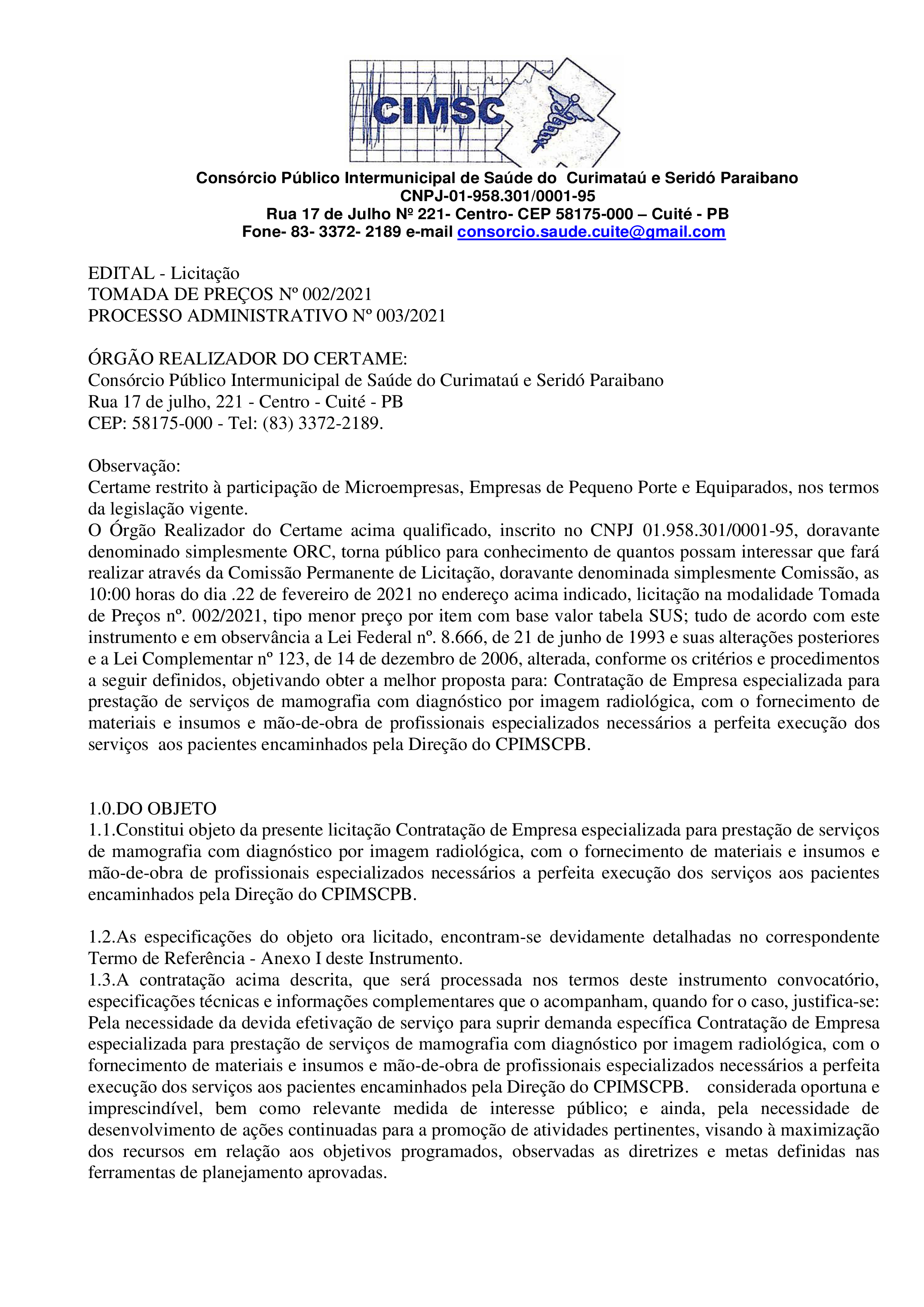 EDITAL - TOMADA DE PREÇOS Nº 0003/2021 - PROCESSO ADMINISTRATIVO NO 003/2021