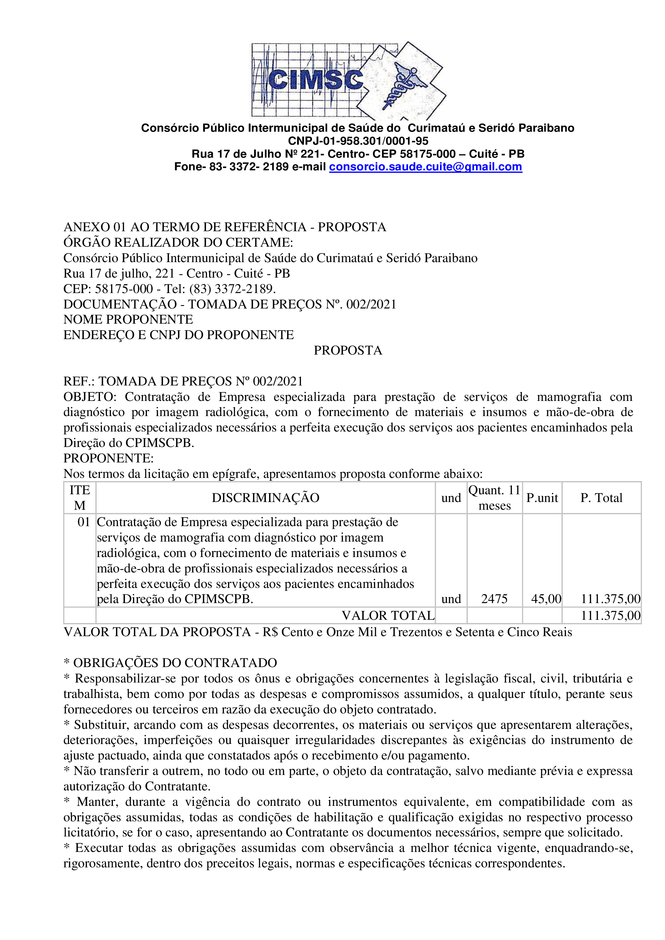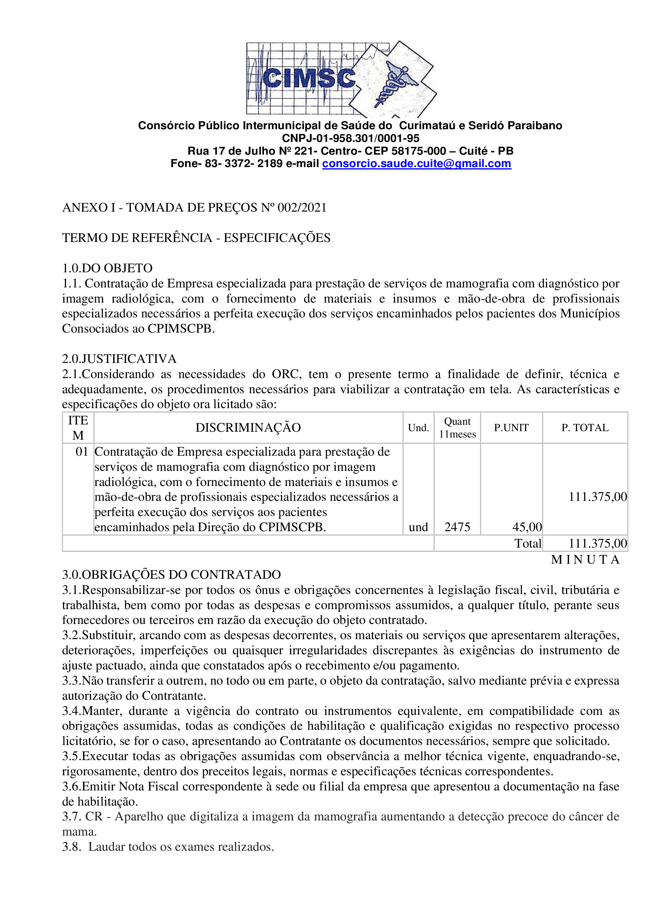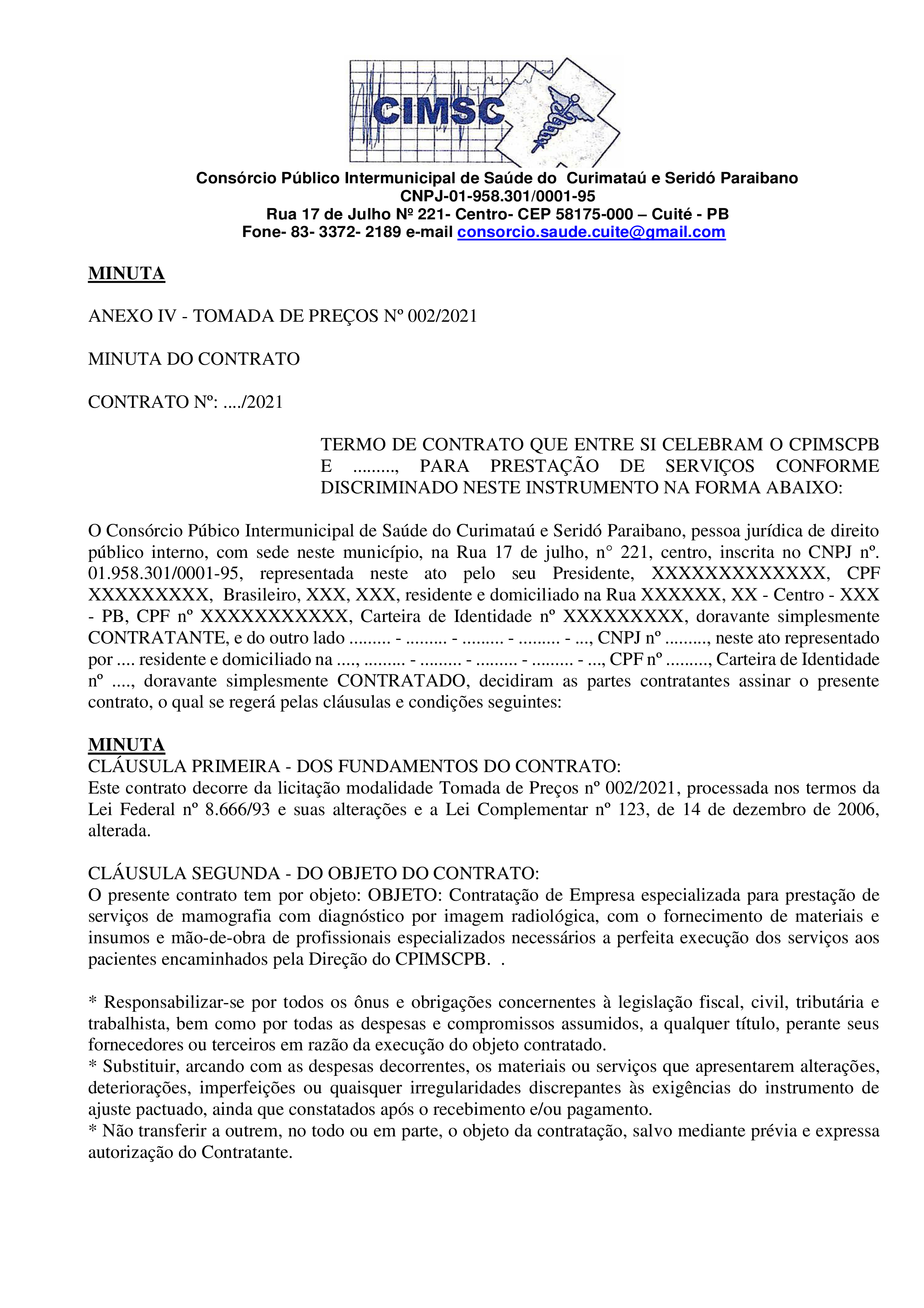EDITAL - TOMADA DE PREÇOS Nº 0003/2021 - PROCESSO ADMINISTRATIVO NO 003/2021