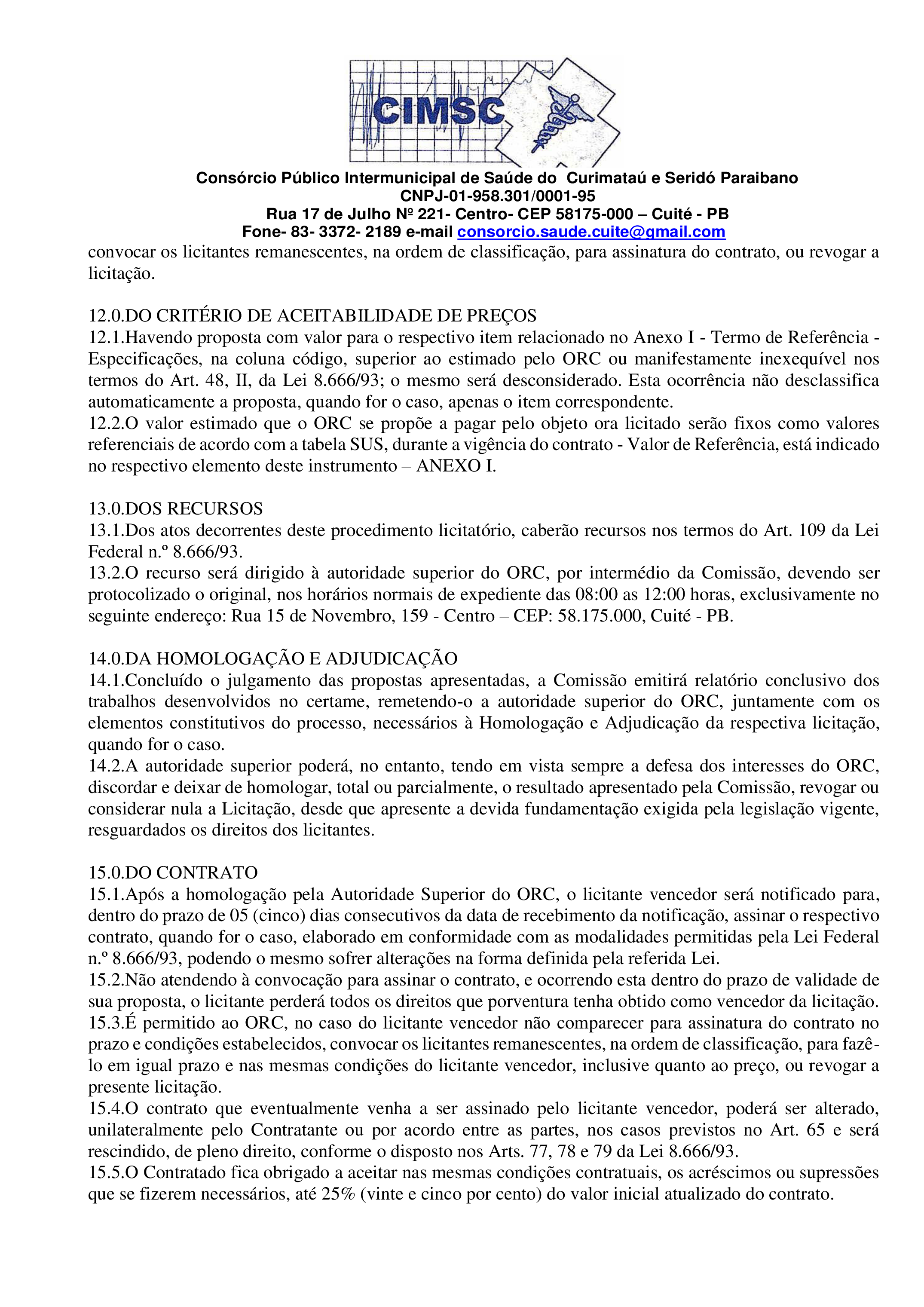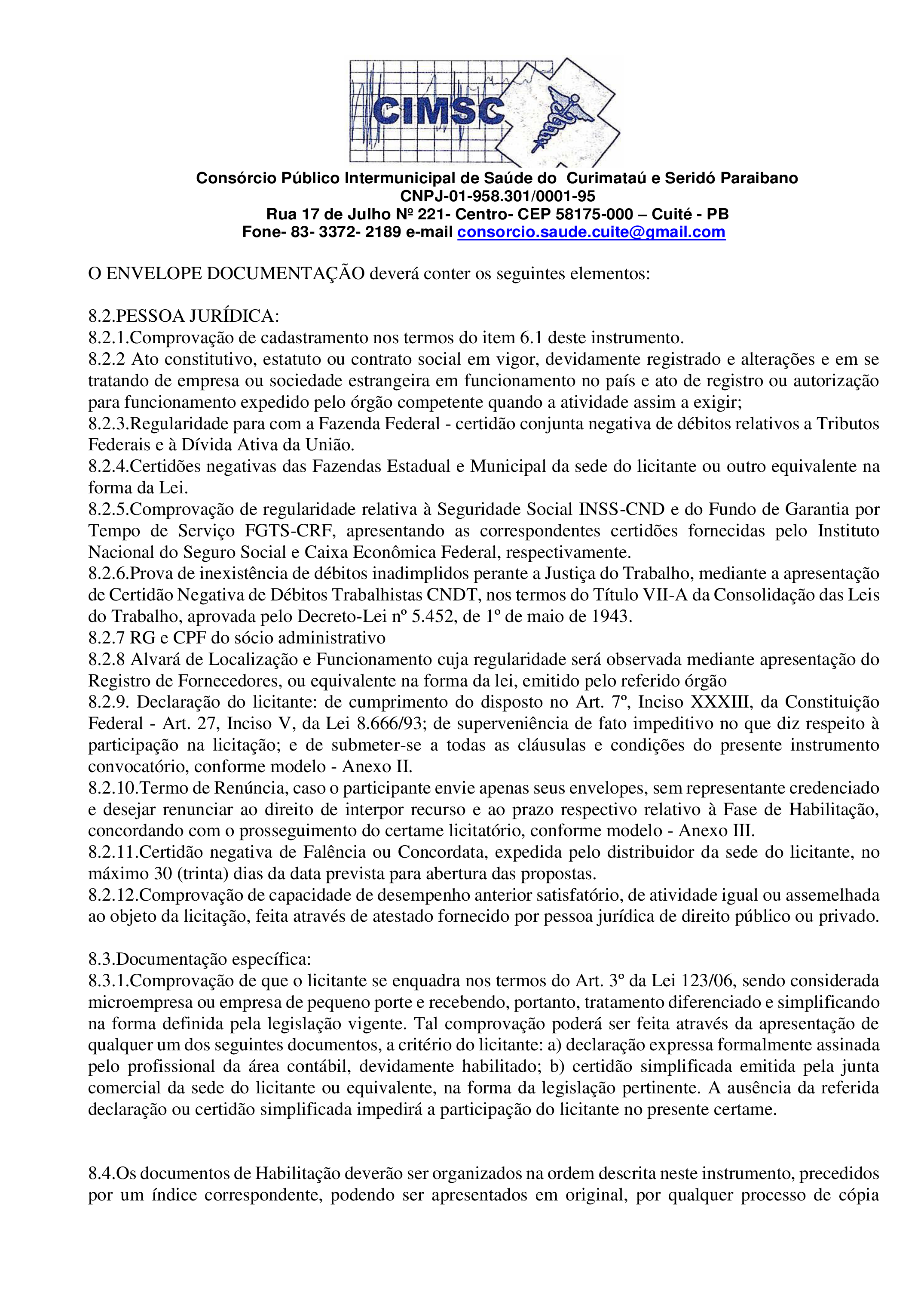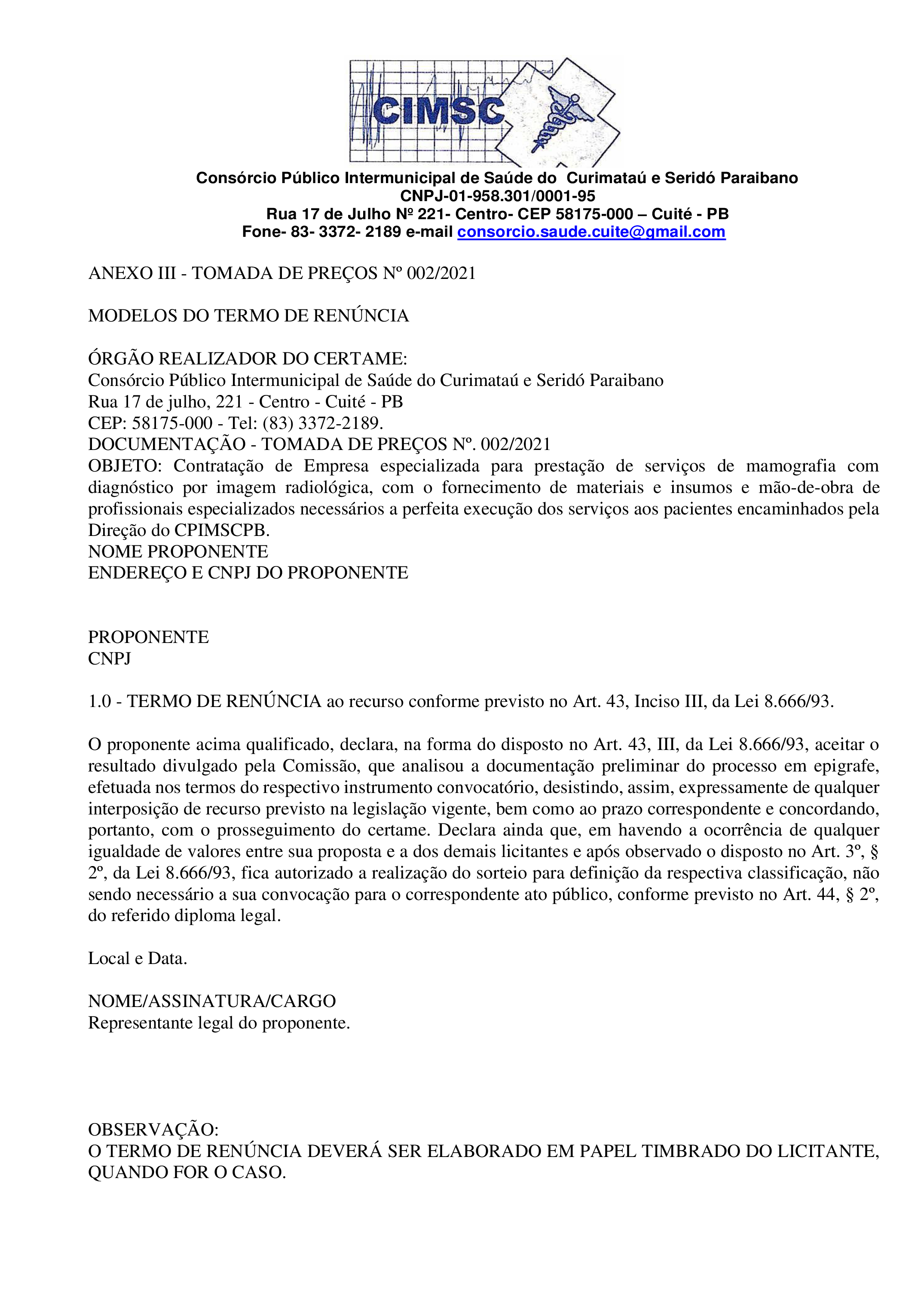 Conforme MP n° 2.200-2 de 24/08/2001, que institui a infraestrutura de chaves Públicas. Matéria Publicada no Diário Oficial do Consórcio Intermunicipal de Saúde do Curimataú e Seridó Paraibano/PB no dia - Edição 00176.